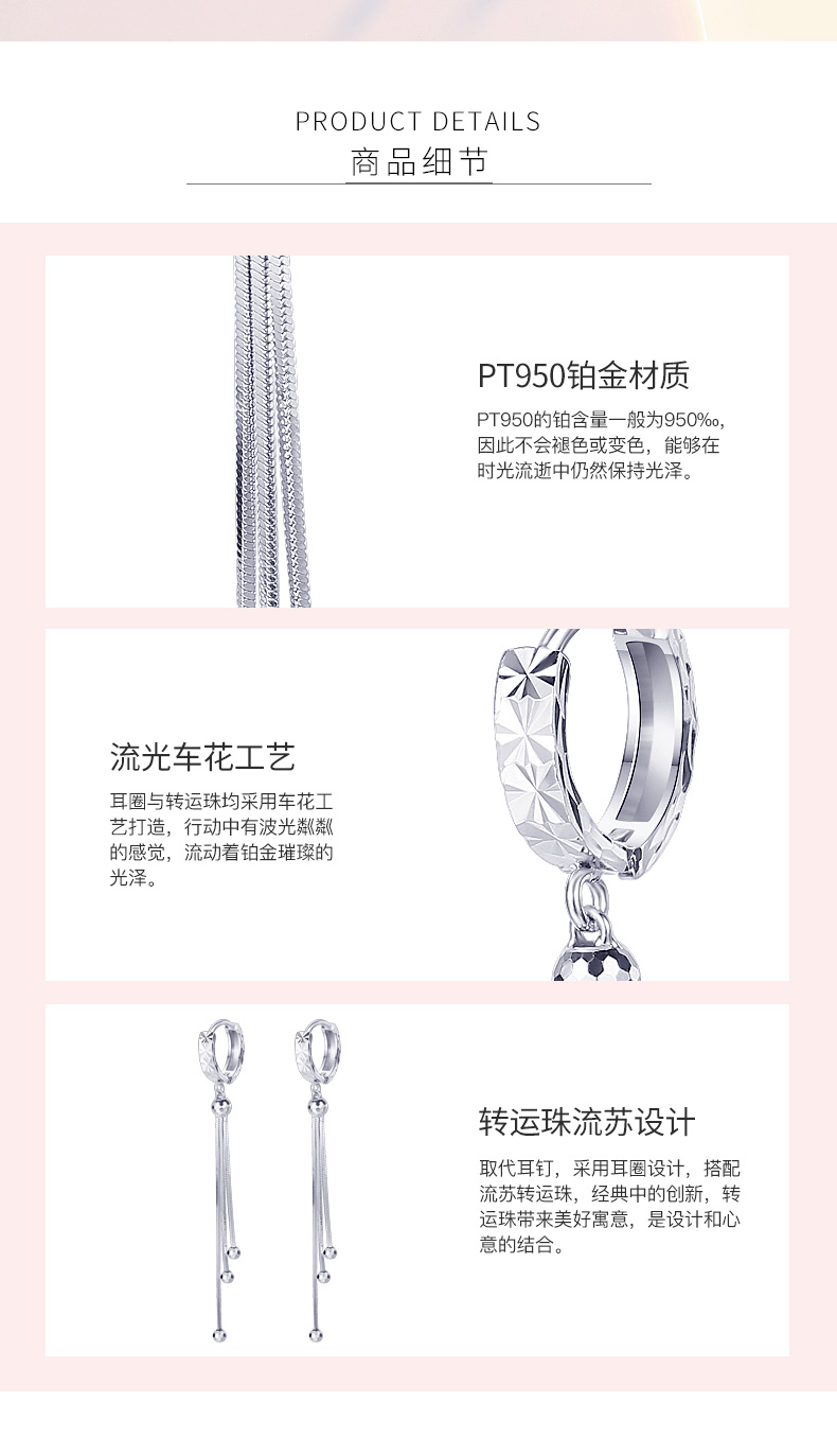 Luohe Platinum Ear Wire Women's Romantic Tassel Earrings pt950 Earrings Platinum Long Earrings Earrings Tanabata Love PT950 3.4-3.6g + Blue Ribbon Gift Box