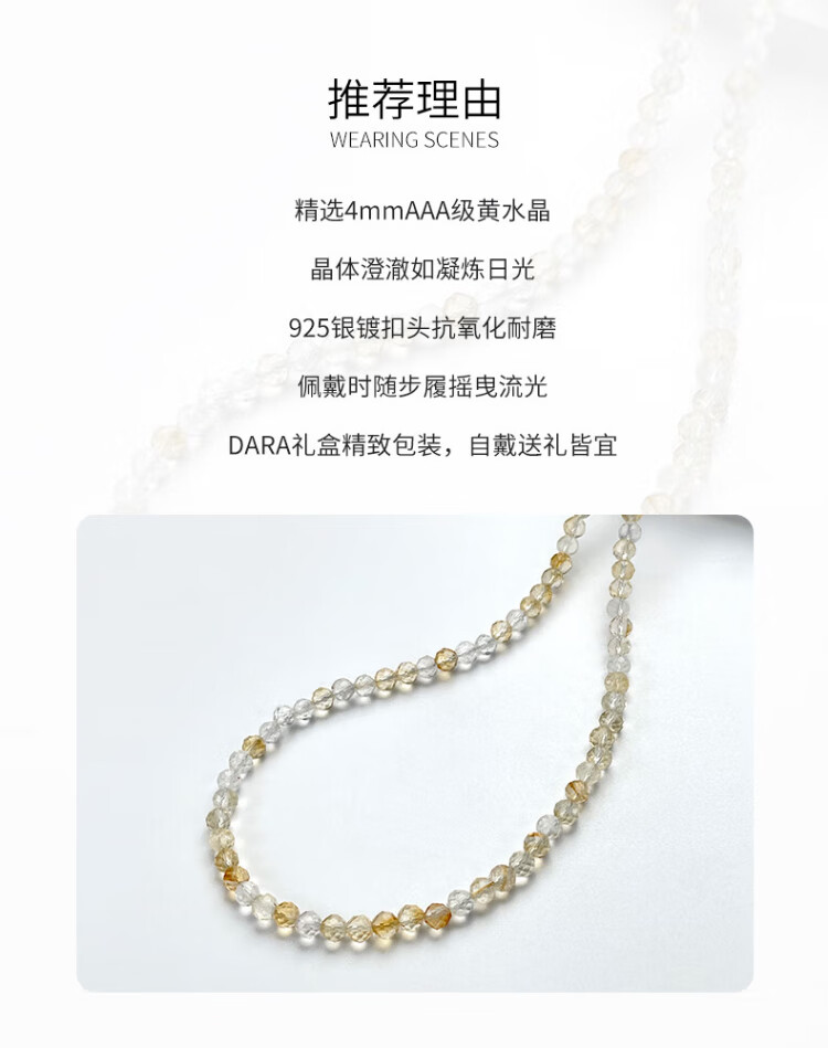 Dara birthstone gift s925 silver citrine tourmaline necklace women's fine chain clavicle chain birthday gift for girlfriend and wife