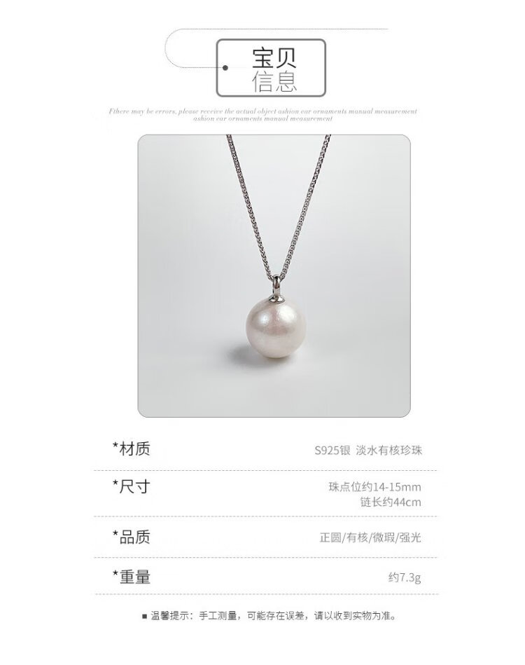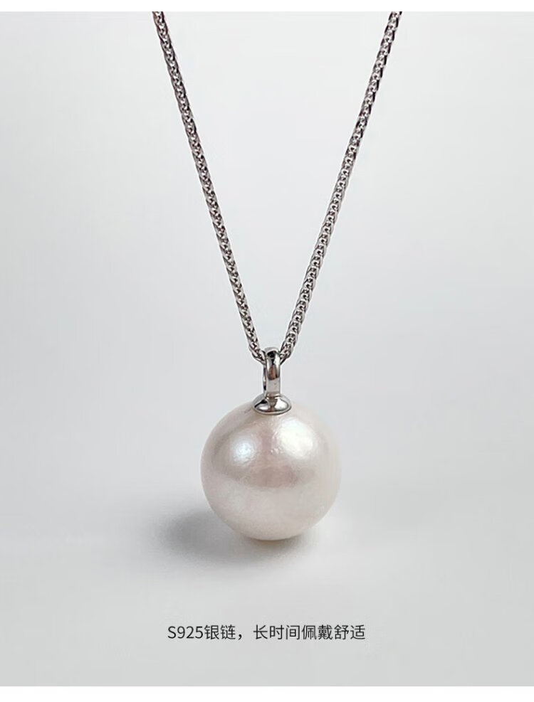 Dara Freshwater Pearl Necklace Young Pearl Pendant Single Pearl Practical Gift for Elders’ Birthdays for Girlfriends 14-15mm