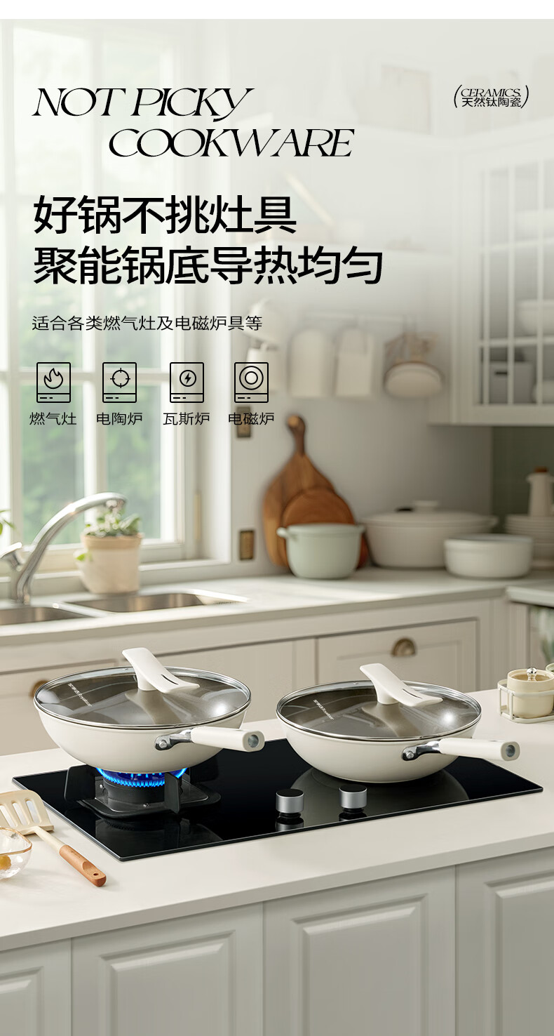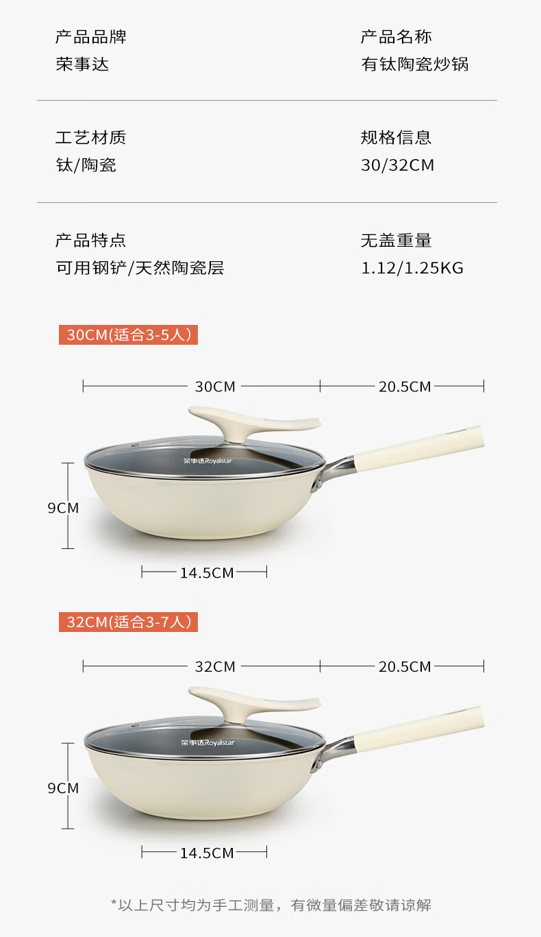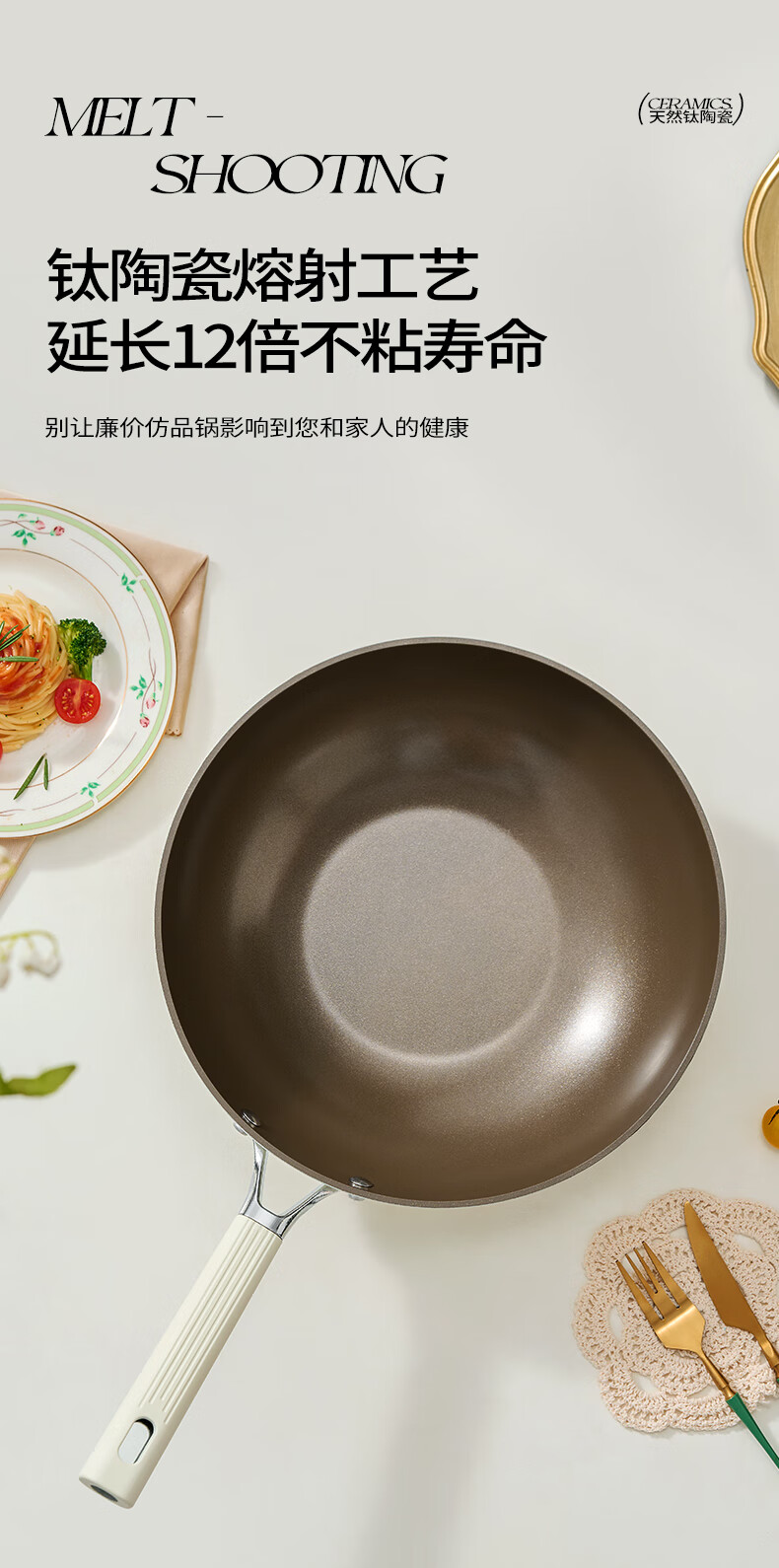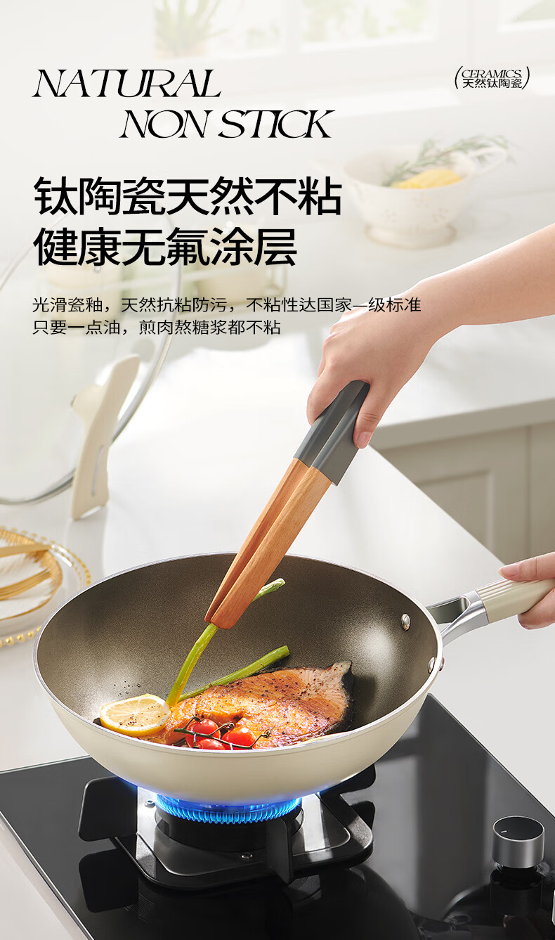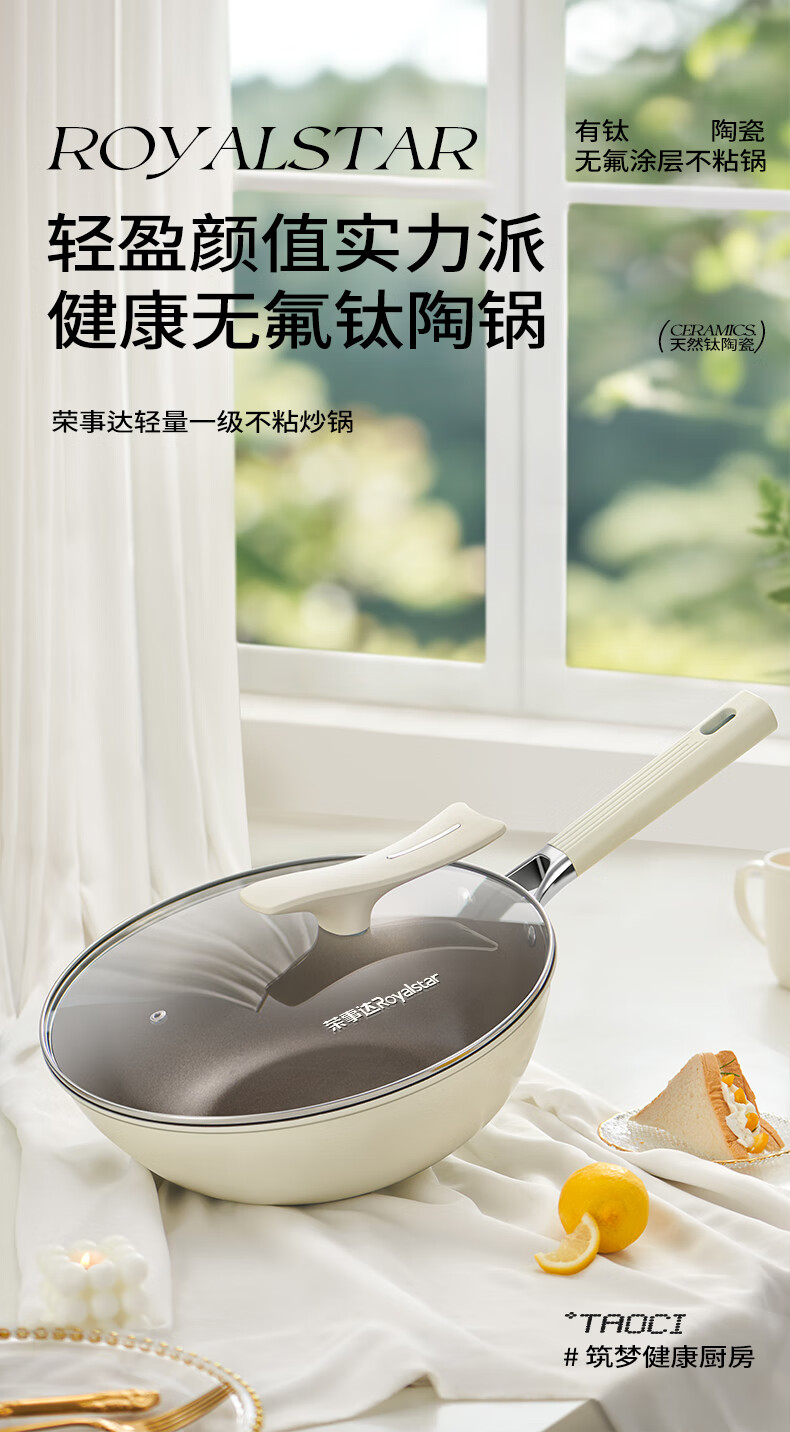 Royalstar ceramic wok non-stick household wok titanium wok iron non-stick gas stove induction cooker universal 30 with lid