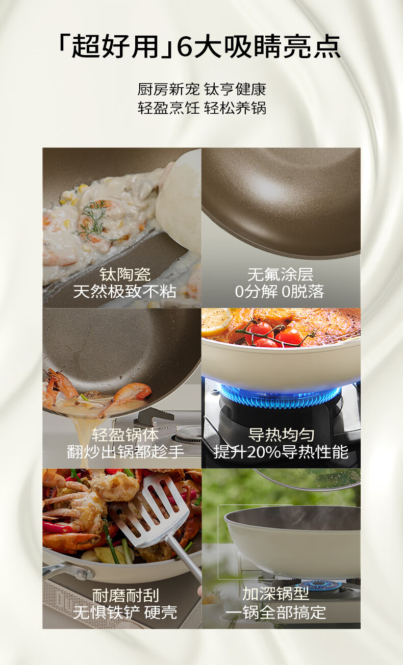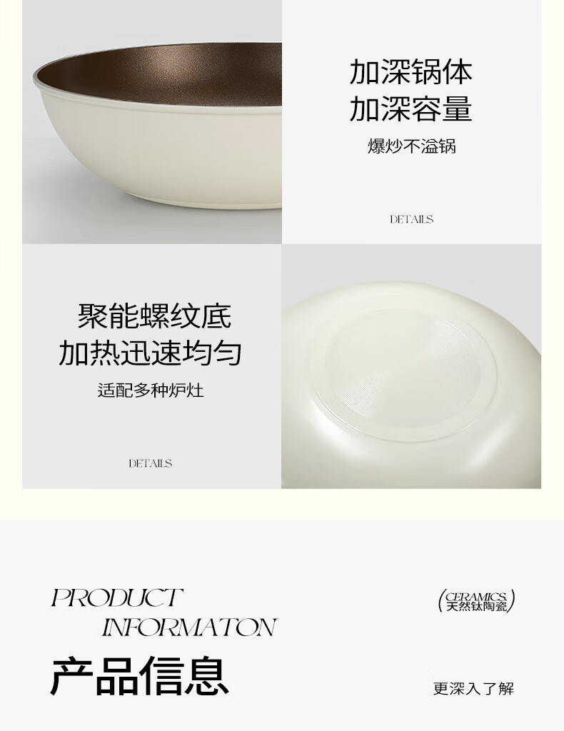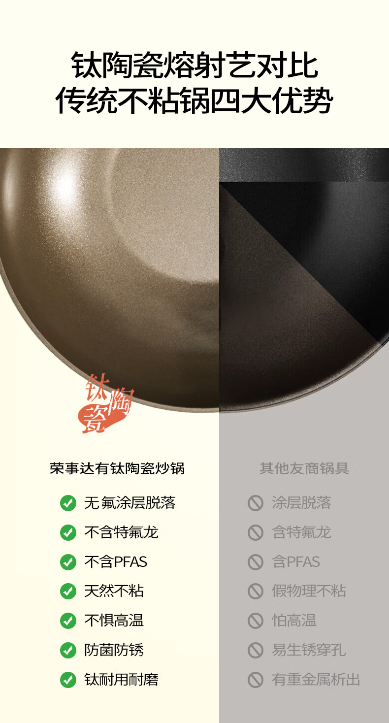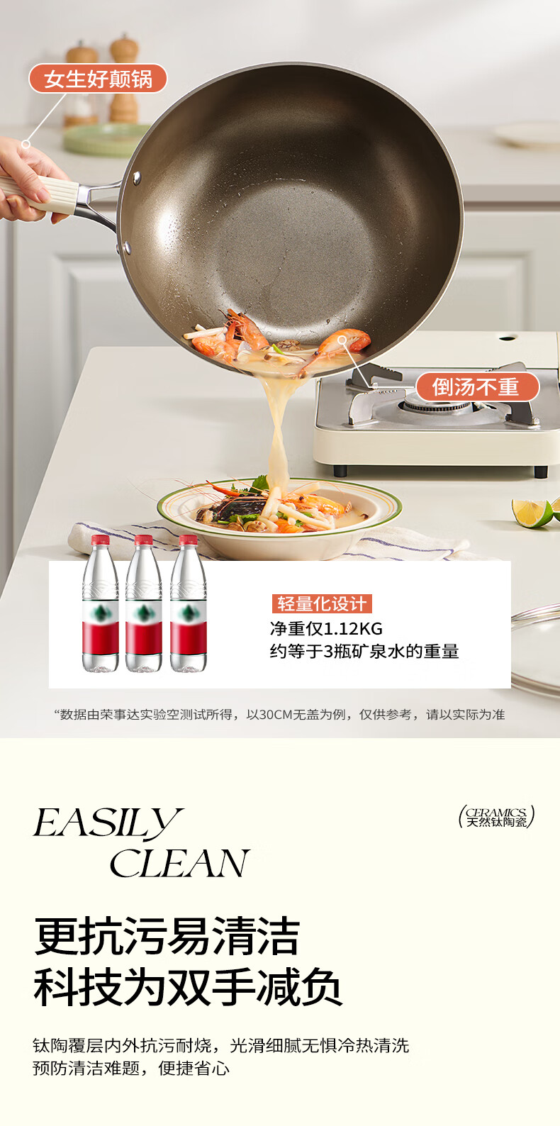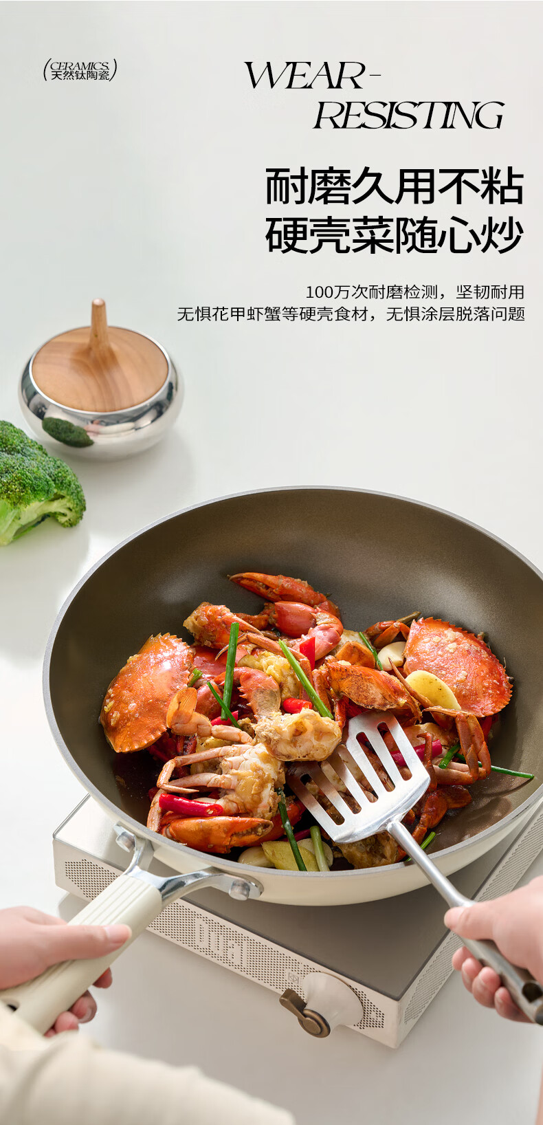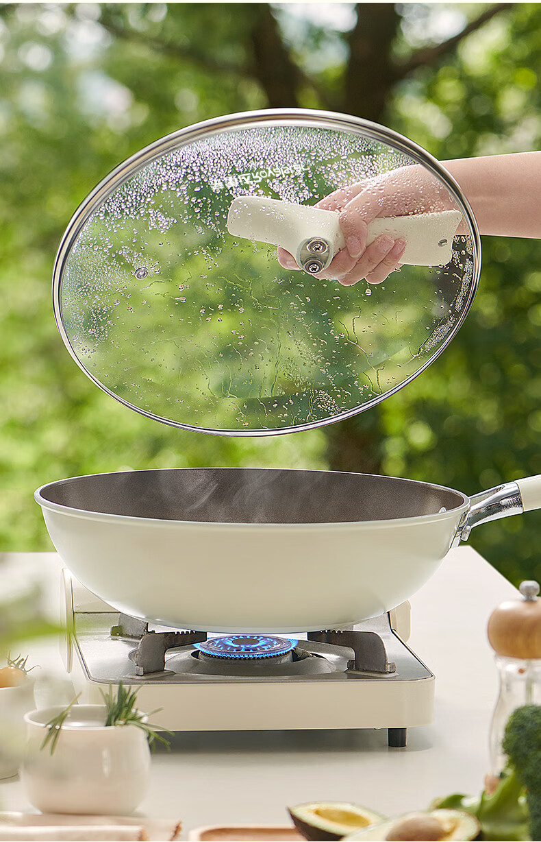 Royalstar ceramic wok non-stick household wok titanium wok iron non-stick gas stove induction cooker universal 30 with lid
