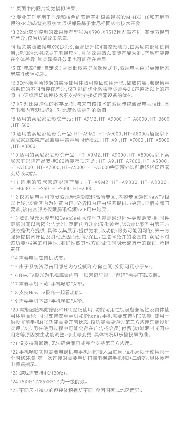 Sony (SONY) K-85XR51Z XR50 Series 85-inch Sony TV 5 Series 64G Version 2025 New Product MiniLED XR Chip First-Class Energy Efficiency National Subsidy