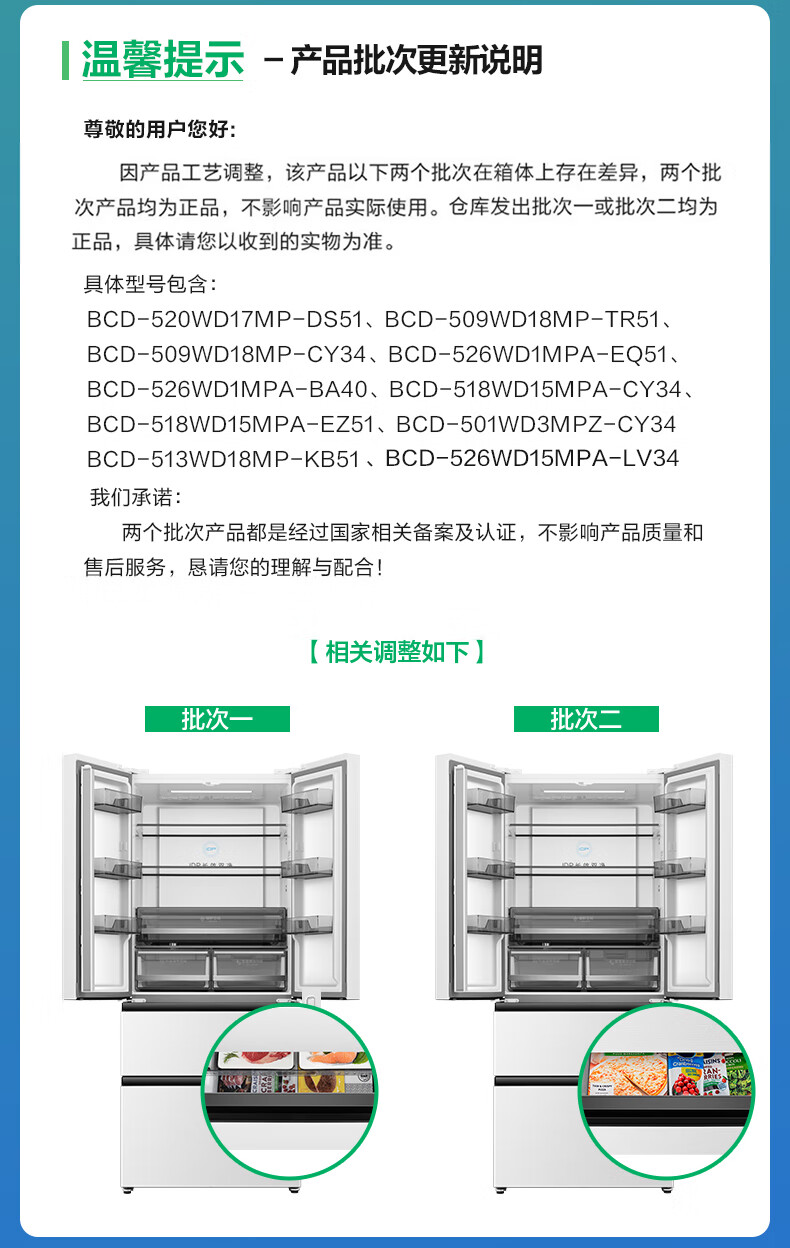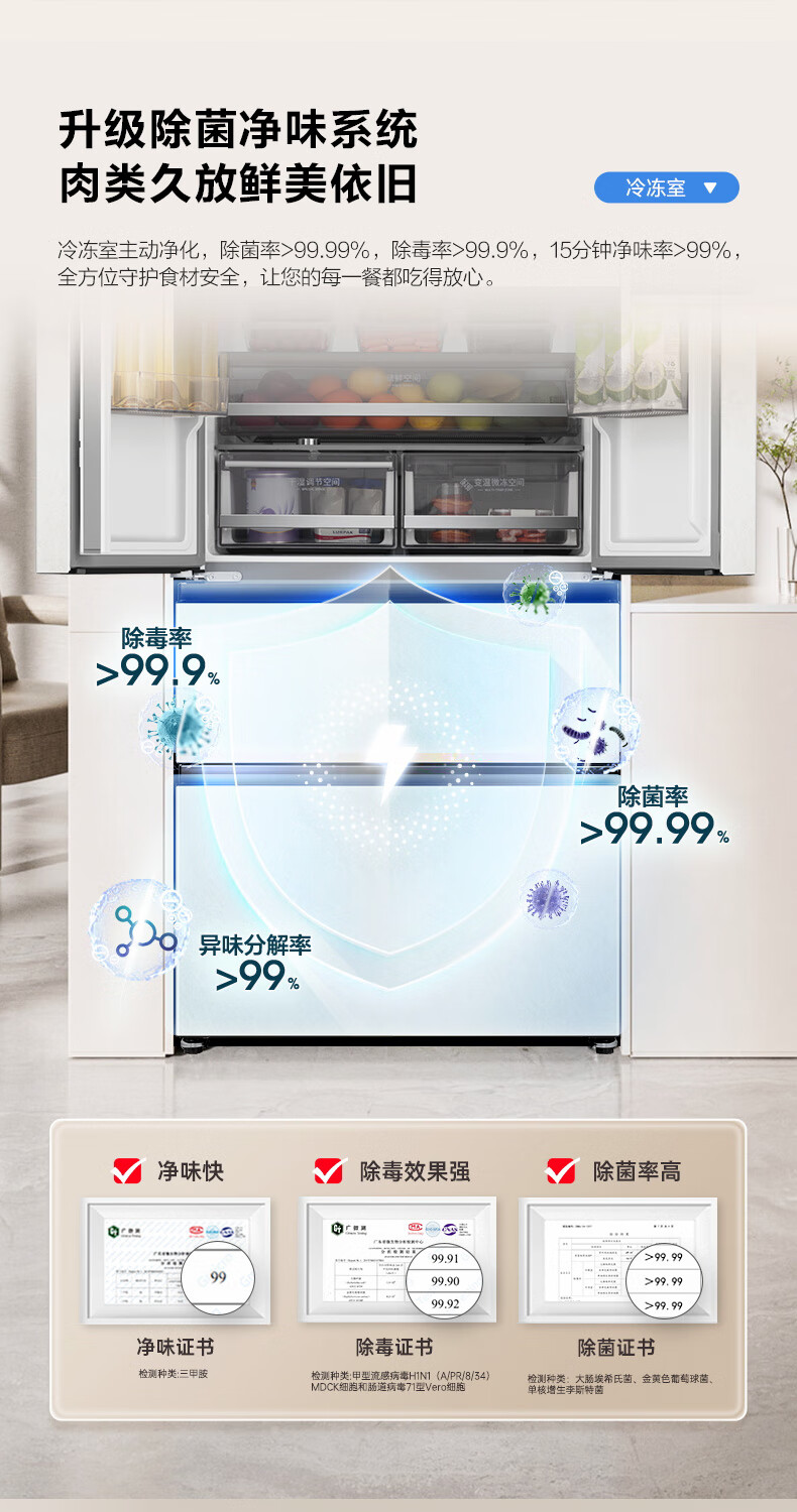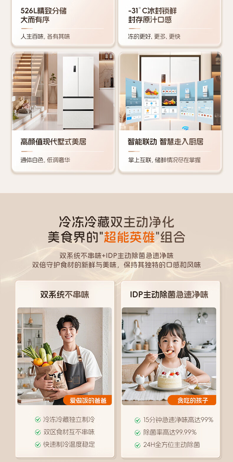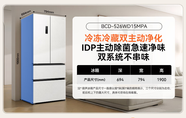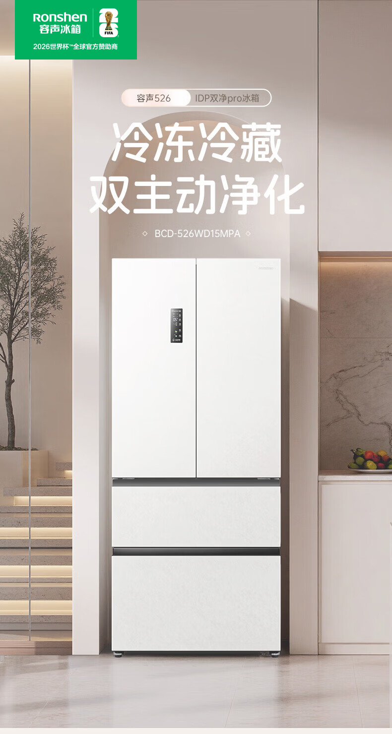 Rongsheng 526pro double purification double system circulation French multi-door four-door refrigerator household ice making first-class energy efficiency air-cooled frost-free BCD-526WD15MPA white national subsidy