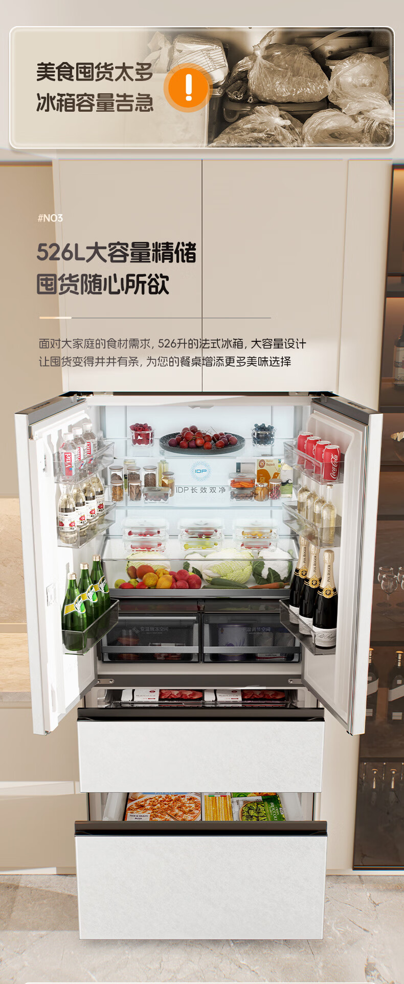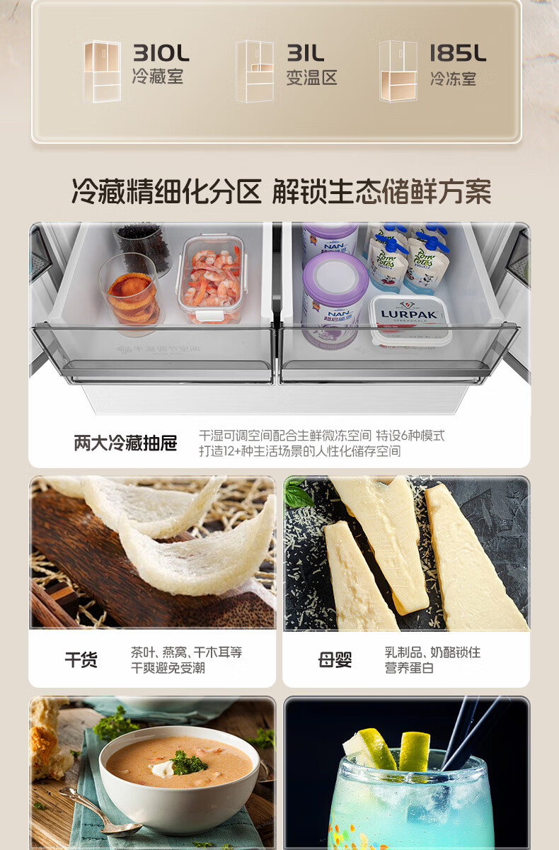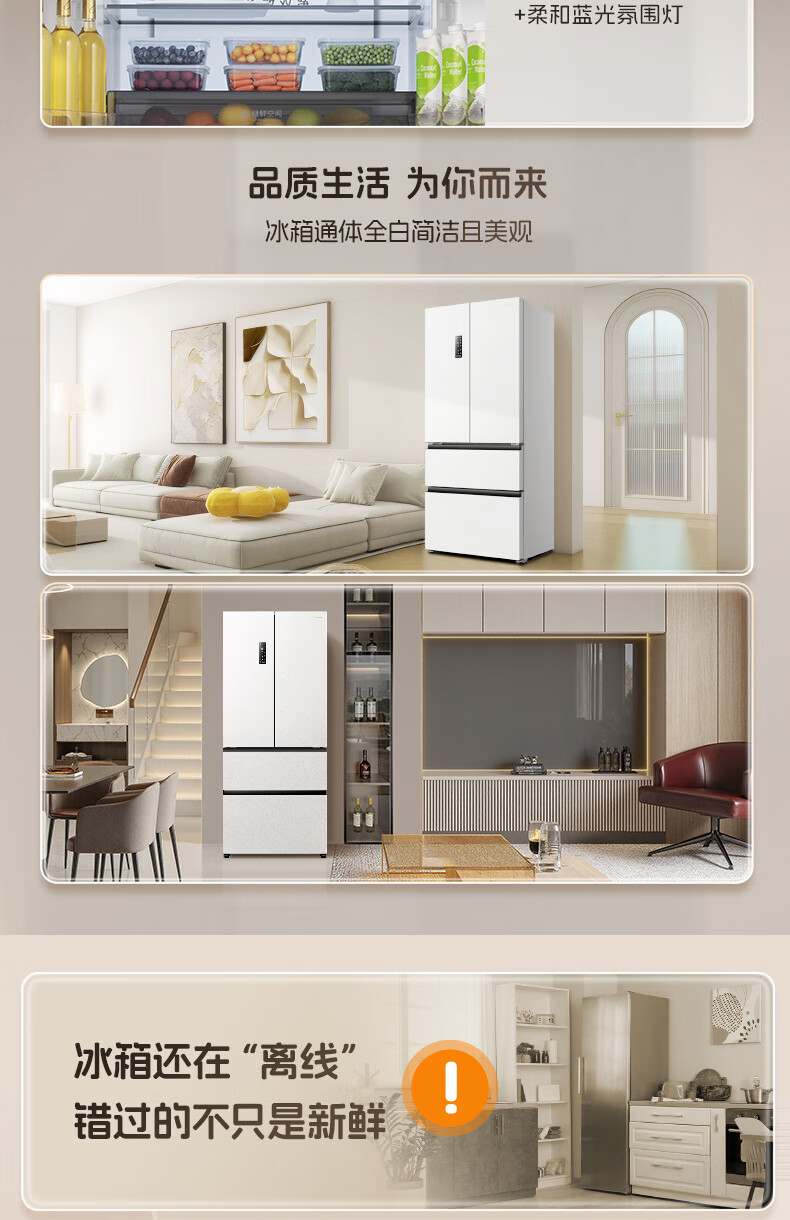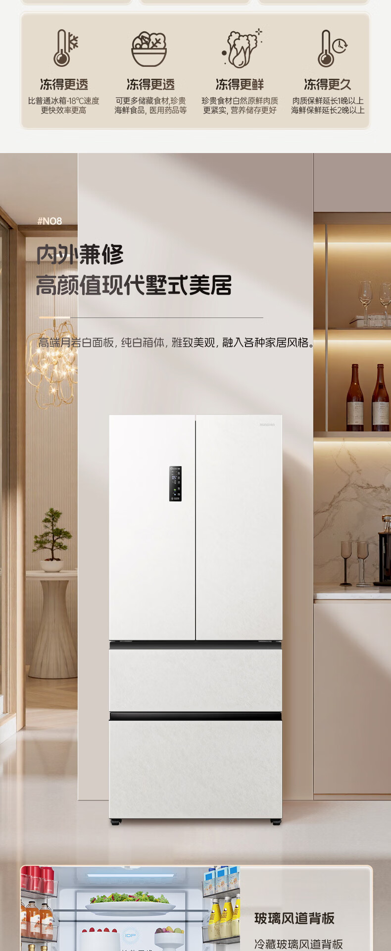 Rongsheng 526pro double purification double system circulation French multi-door four-door refrigerator household ice making first-class energy efficiency air-cooled frost-free BCD-526WD15MPA white national subsidy