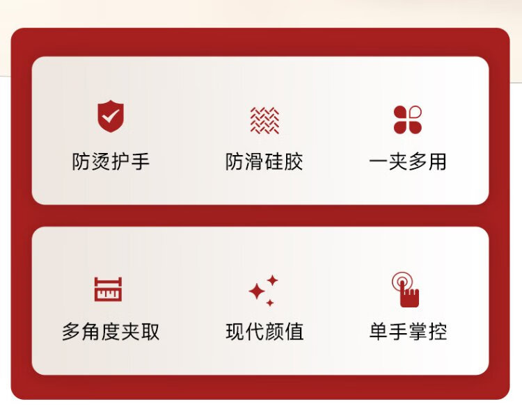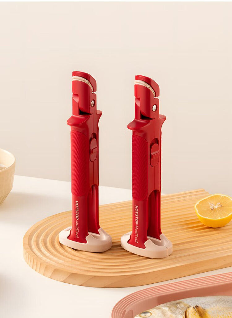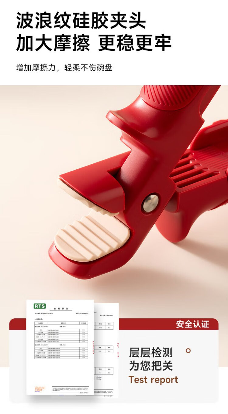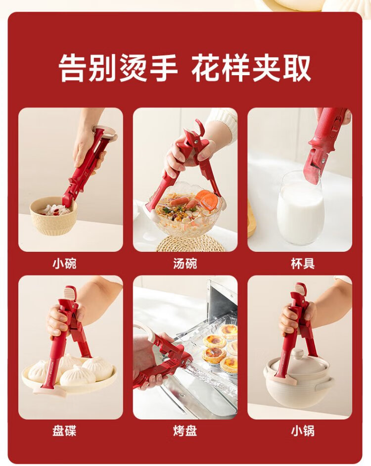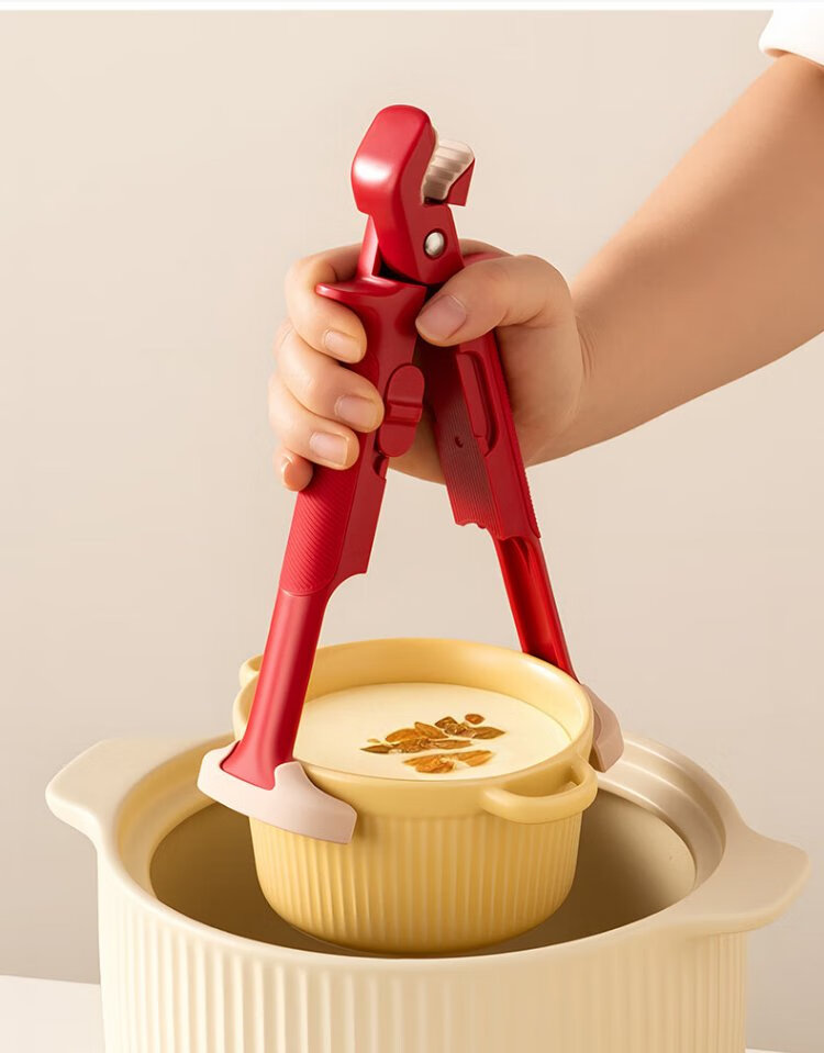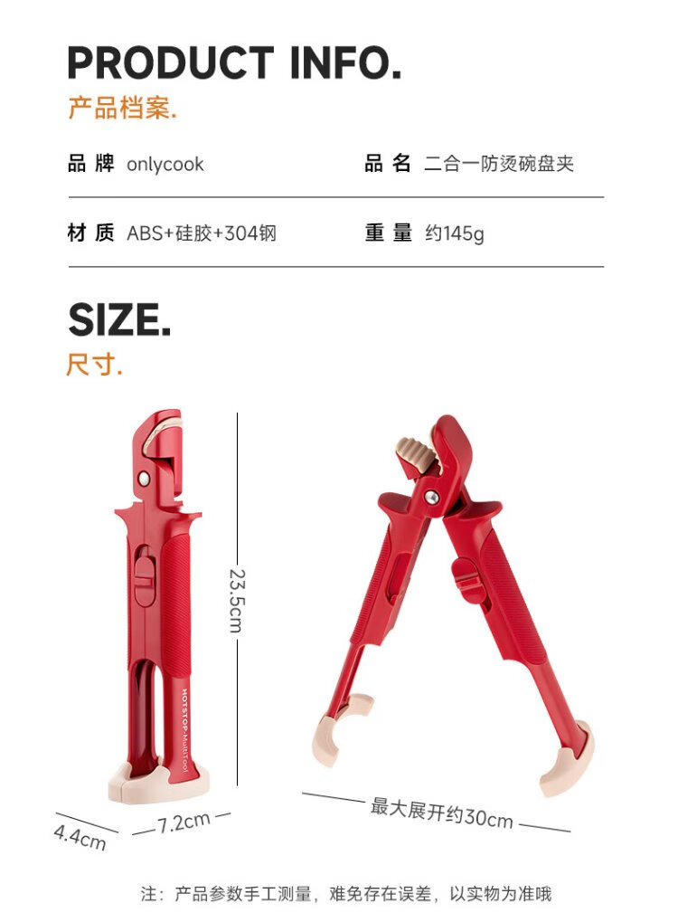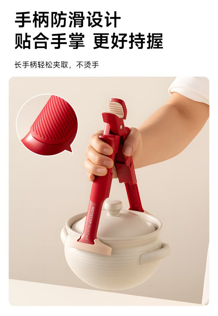 Onlycook two-in-one anti-scalding bowl clamp, anti-slip kitchen clamp, dish clamp, bowl clamp, steamer plate lifter, vegetable tongs - Chinese red