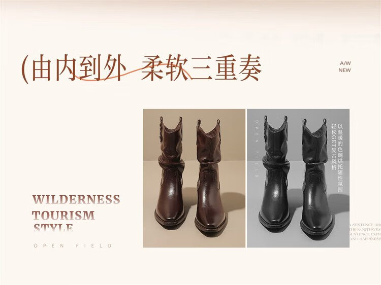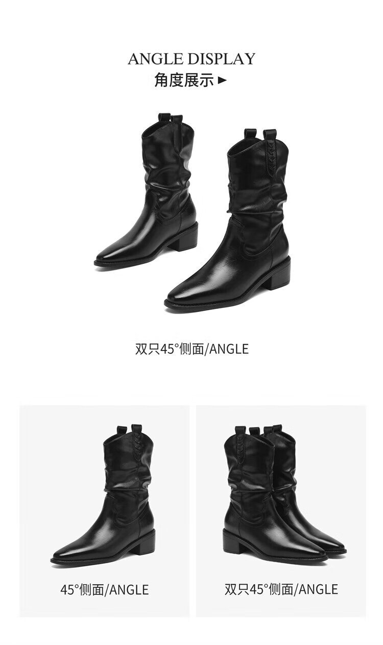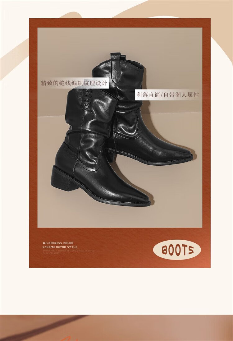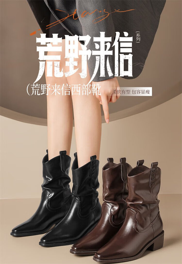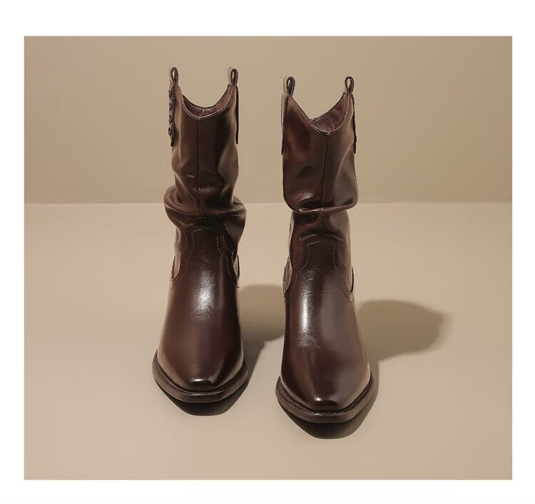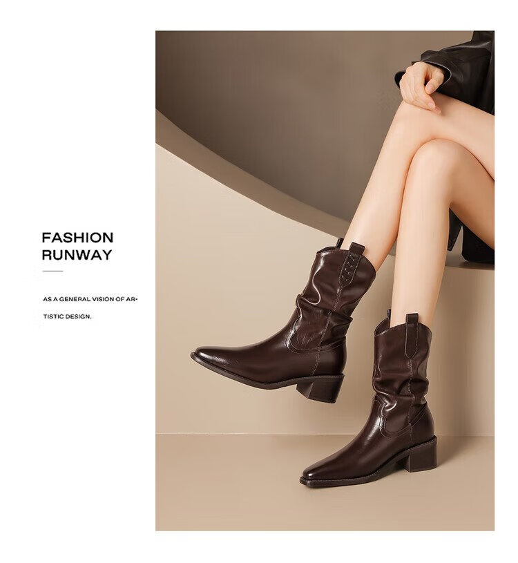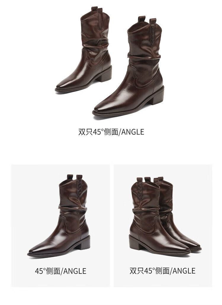 Daphne pointed toe short boots new retro Maillard Western cowboy boots 4025605011 brown 36
