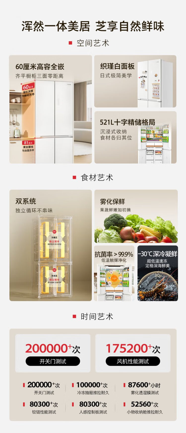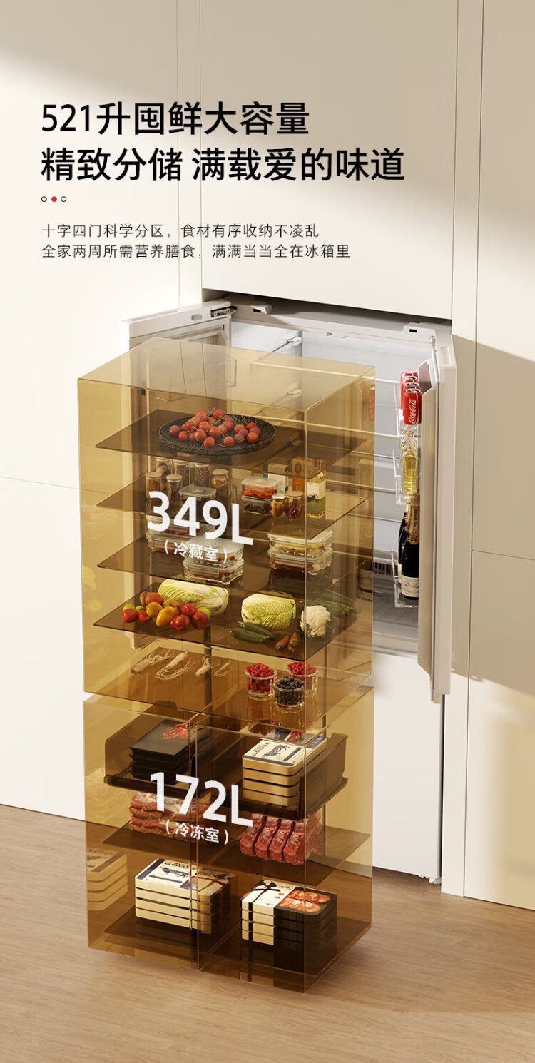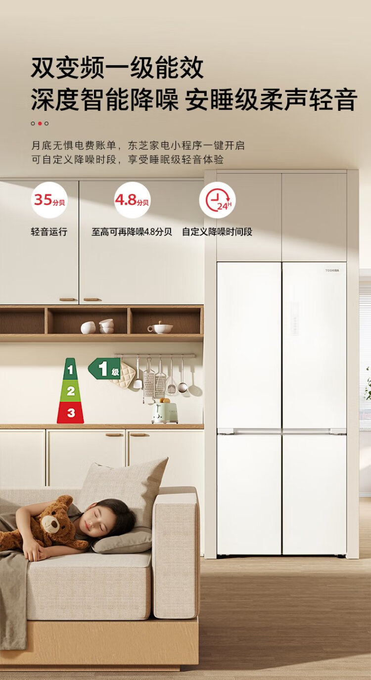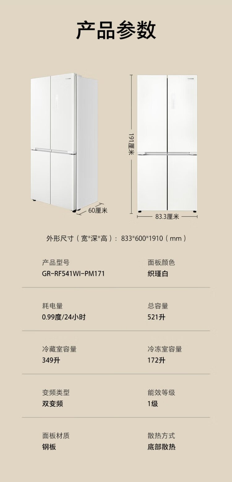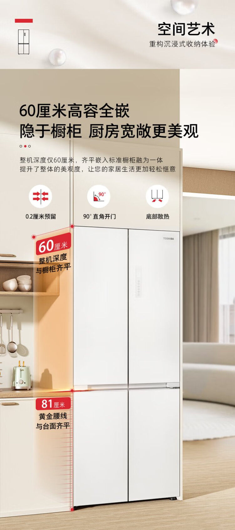 TOSHIBA White Pearl 521L cross-door refrigerator 541 ultra-thin zero embedded large capacity first-class energy efficiency household frost-free GR-RF541WI-PM171 national subsidy