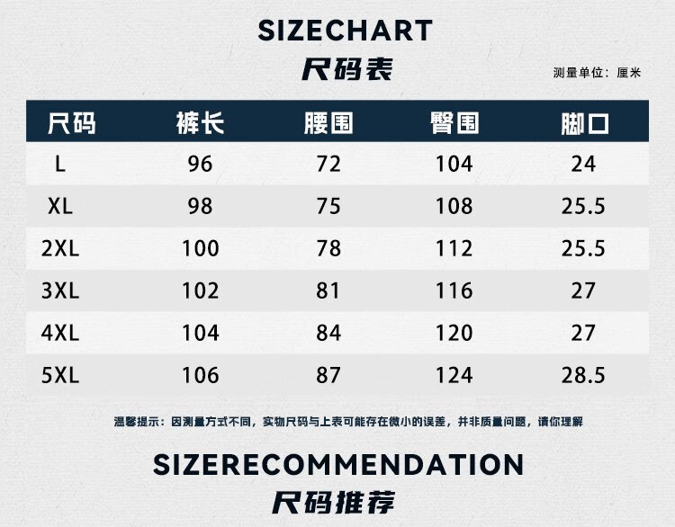 Outseam (cm) 99 cm 101.5 cm 104 cm 106.5 cm 109 cm