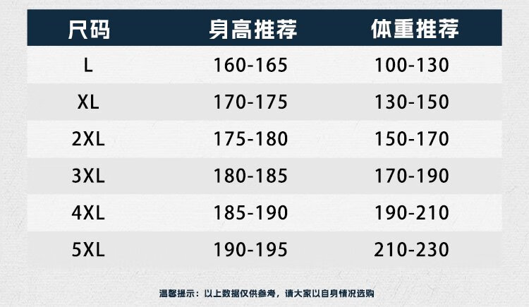 China (cm) 165 / 88-90 170 / 96-98 175 / 108-110 180 / 118-122 185 / 126-130