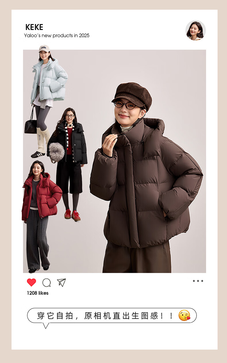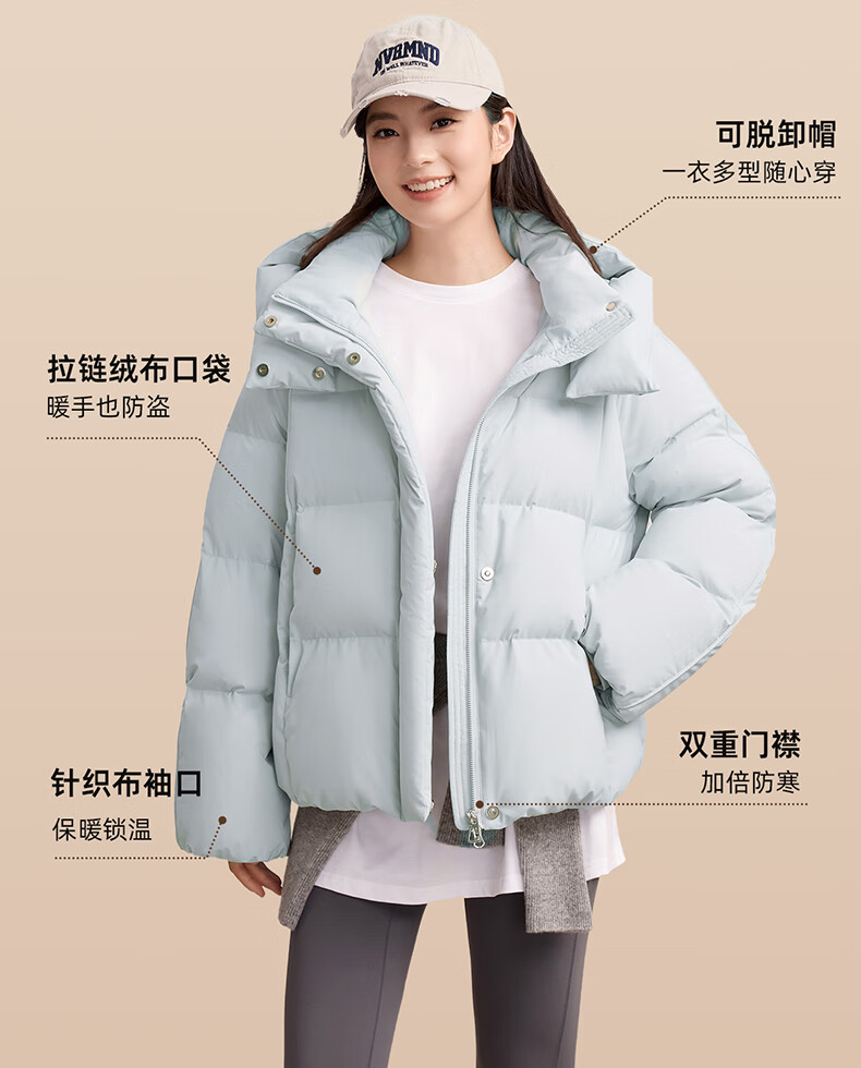 Yalu Puff short down jacket with removable hood for women 2025 autumn and winter new fashion Korean style bread jacket warm jacket