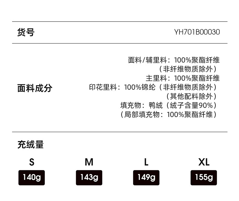 China (cm) 165 / 88-90 170 / 96-98 175 / 108-110 180 / 118-122 185 / 126-130
