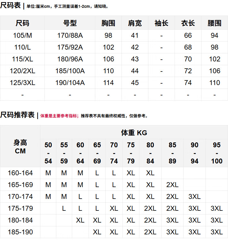 China (cm) 160-165/84-86 165-170 / 88-90 167-172 / 92-96 168-173 / 98-102 170-176 / 106-110