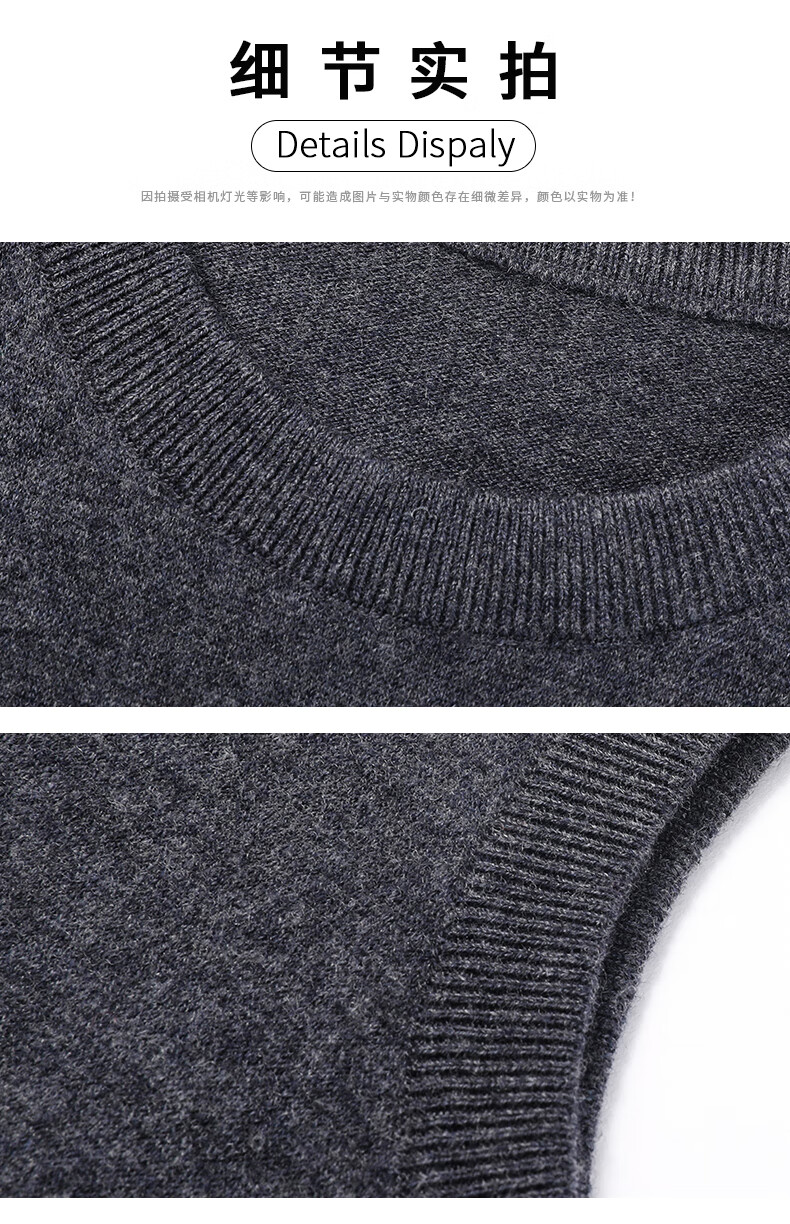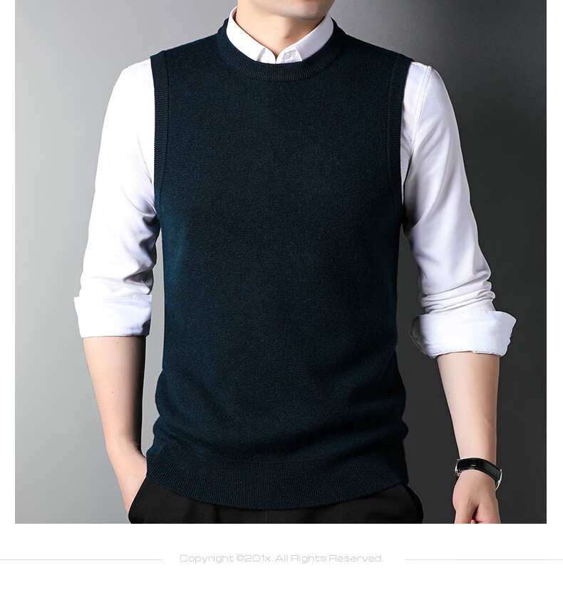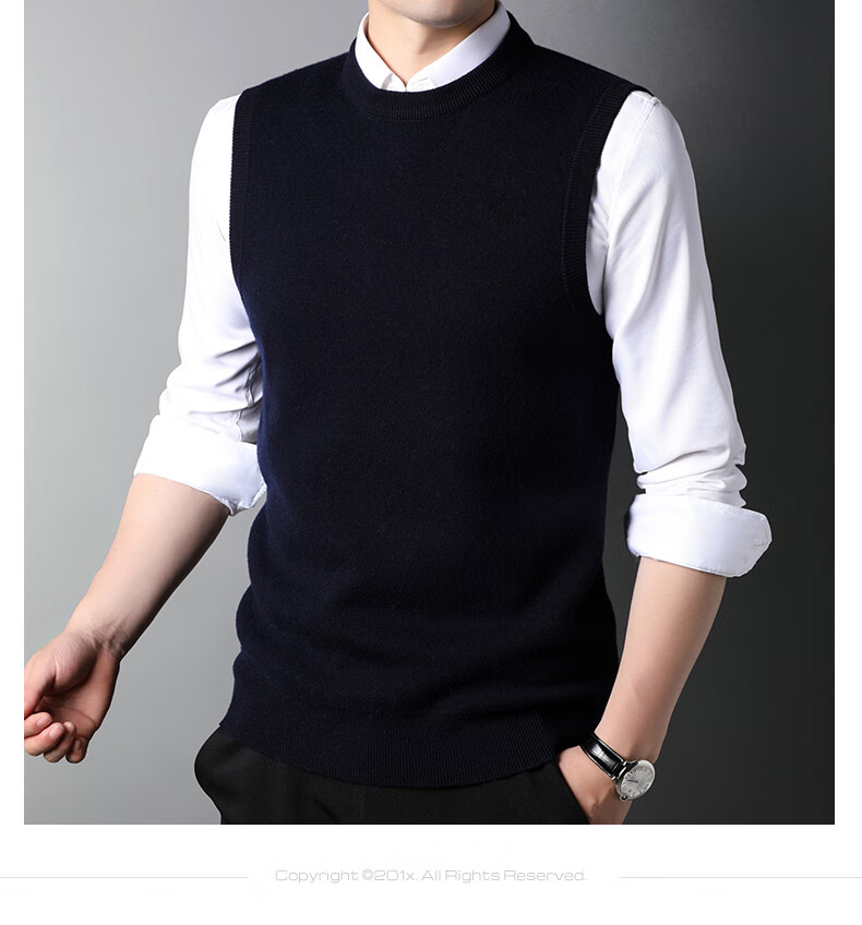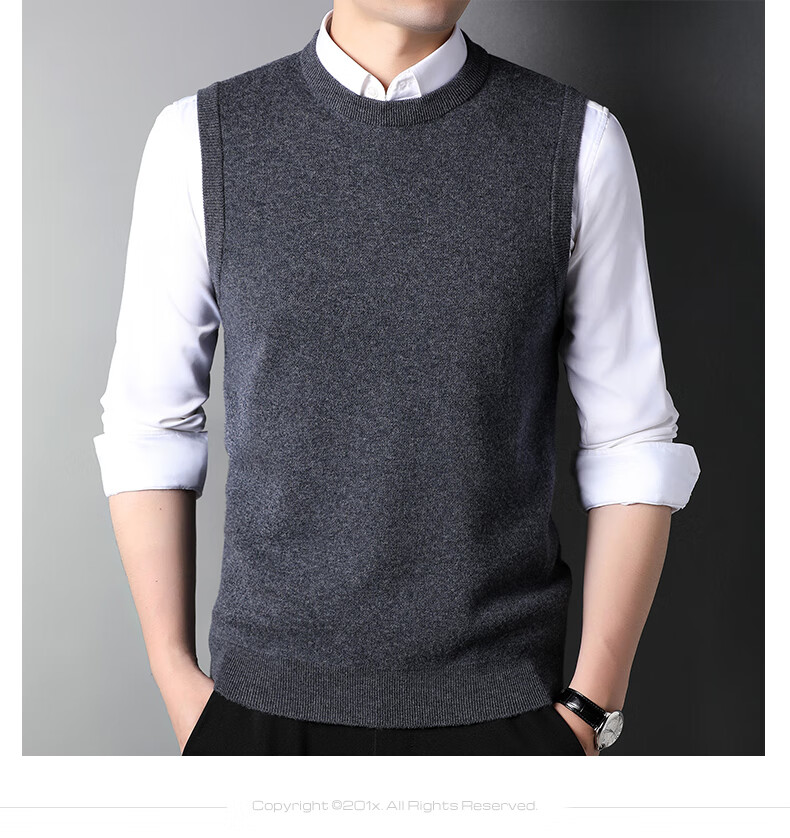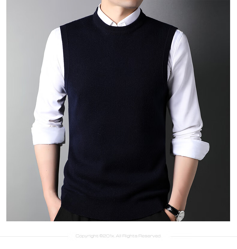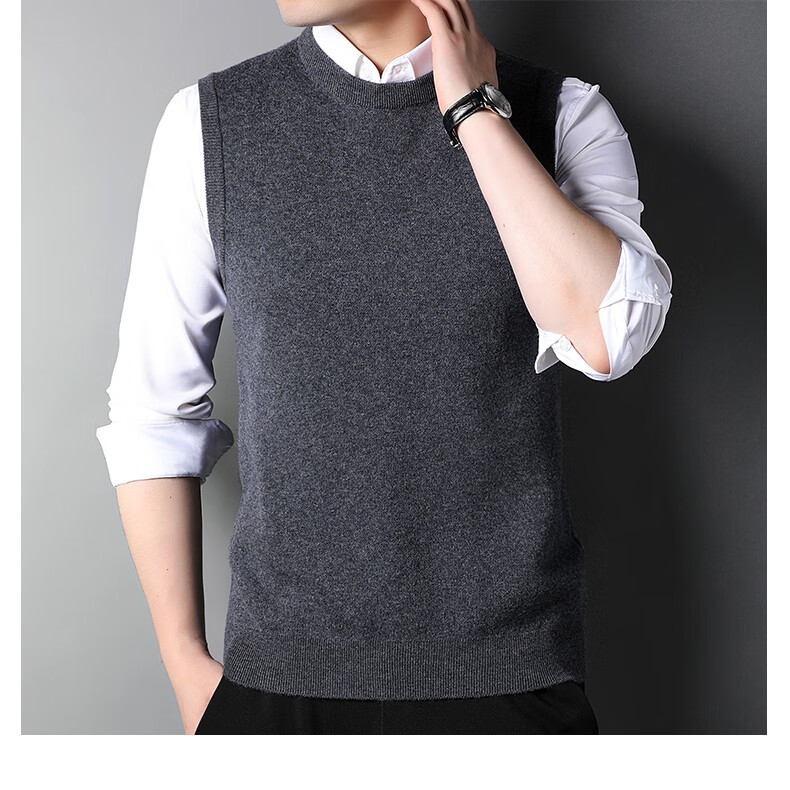 ROMON 100% pure wool sweater men's thick vest round neck autumn and winter casual vest sleeveless waistcoat sweater for middle-aged and young people