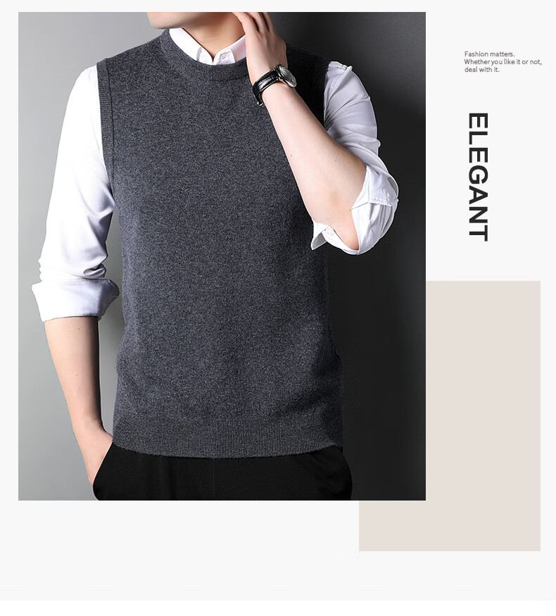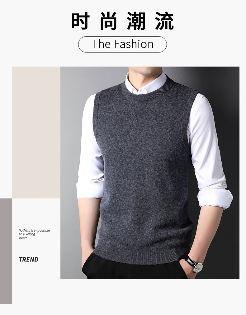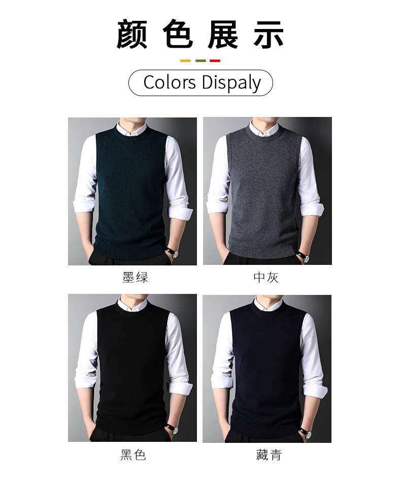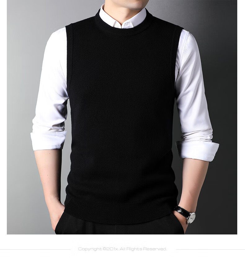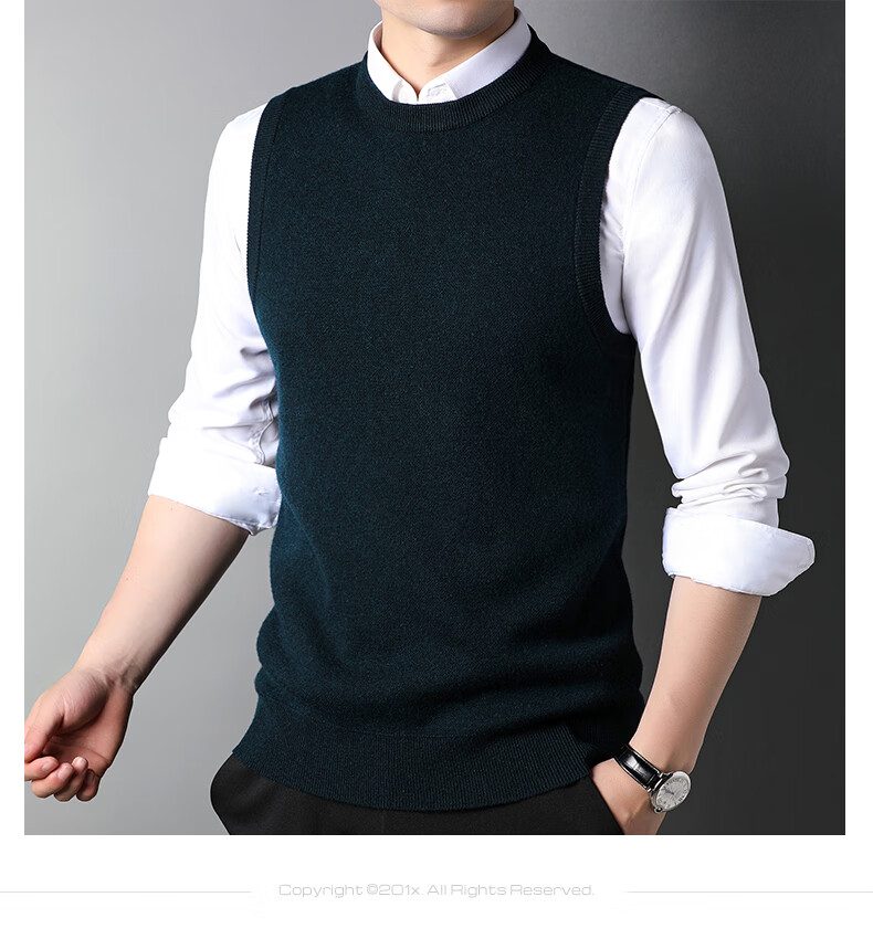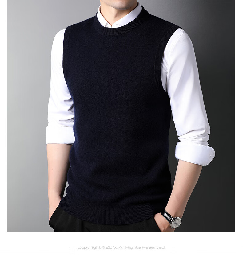 ROMON 100% pure wool sweater men's thick vest round neck autumn and winter casual vest sleeveless waistcoat sweater for middle-aged and young people