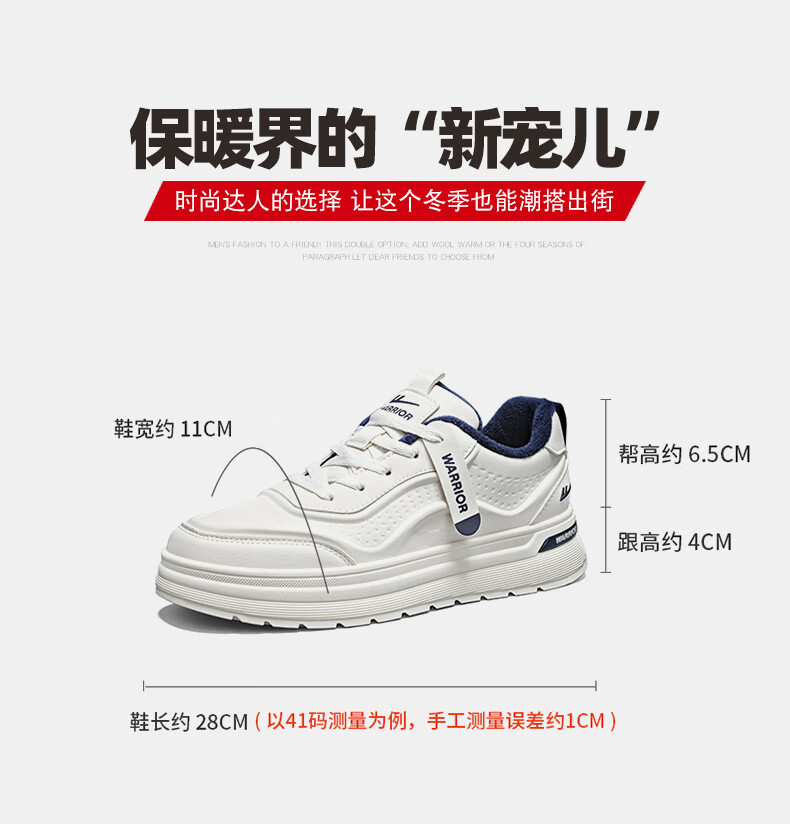 Warrior men's shoes white shoes thick sole casual sports shoes men's sneakers 2938 meters / blue 42