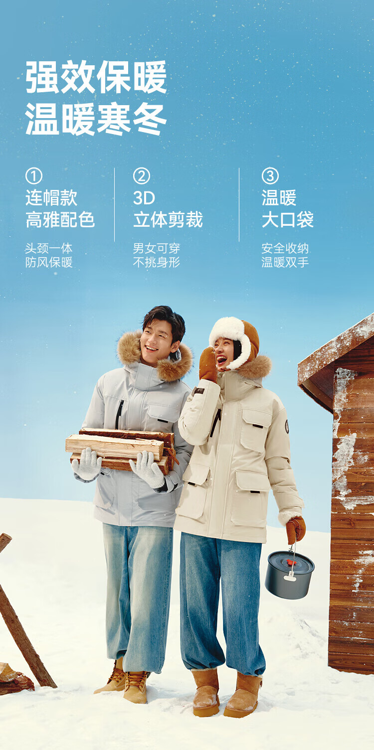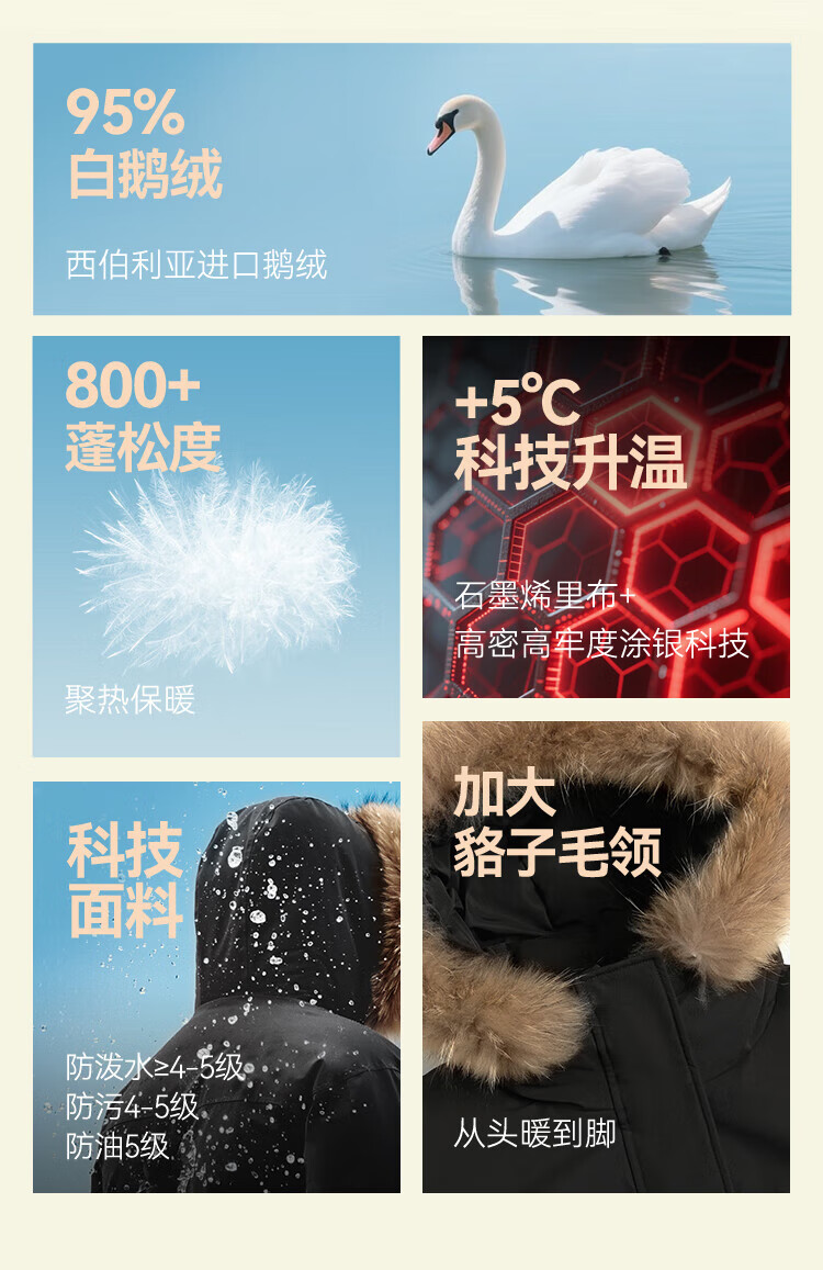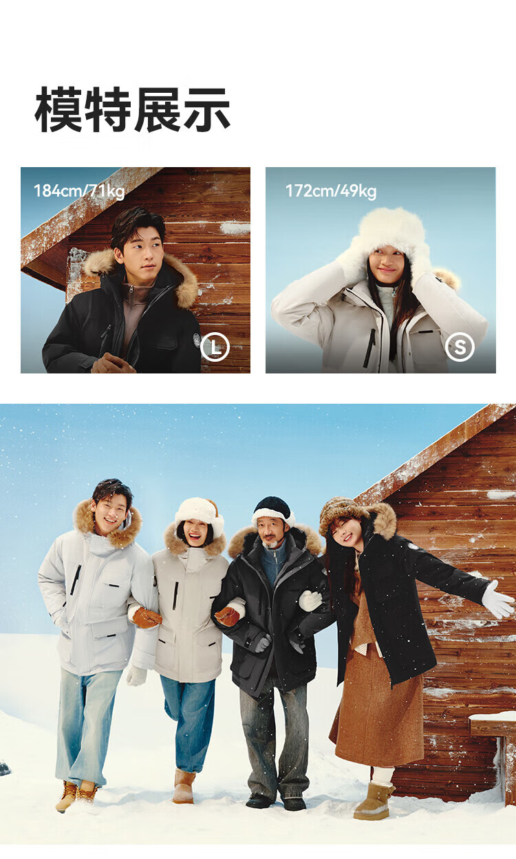 京东京造【进口极寒95鹅绒服】羽绒服男外套女冬季新款中长款 曜石黑 3XL