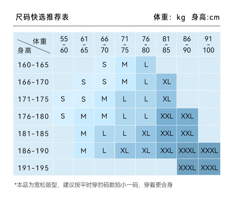 China (cm) 160-165/84-86 165-170 / 88-90 167-172 / 92-96 168-173 / 98-102 170-176 / 106-110