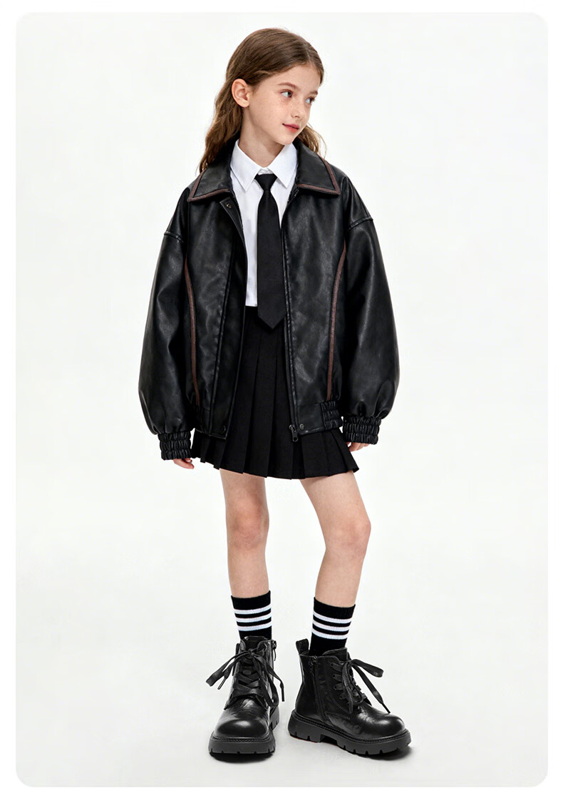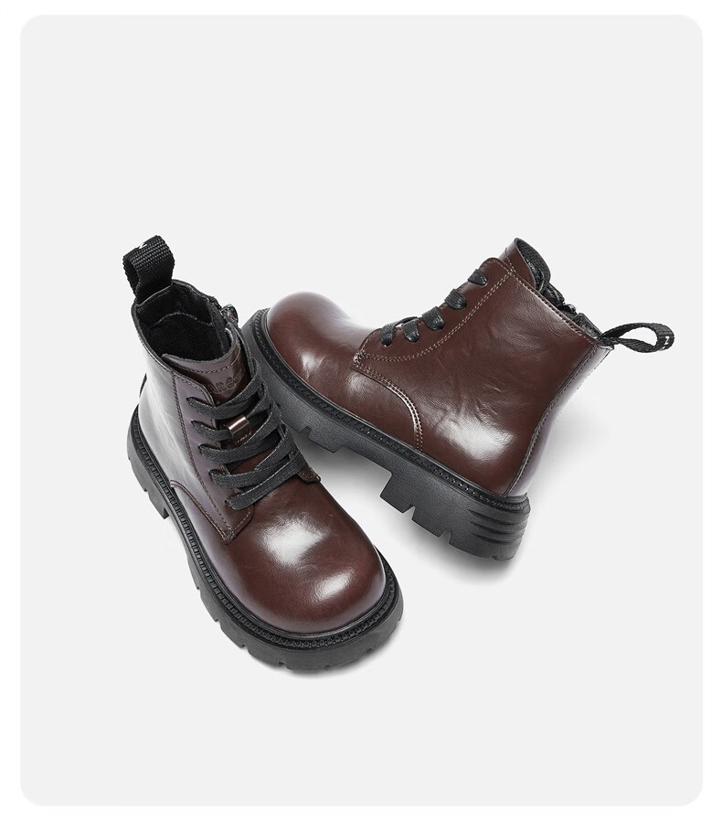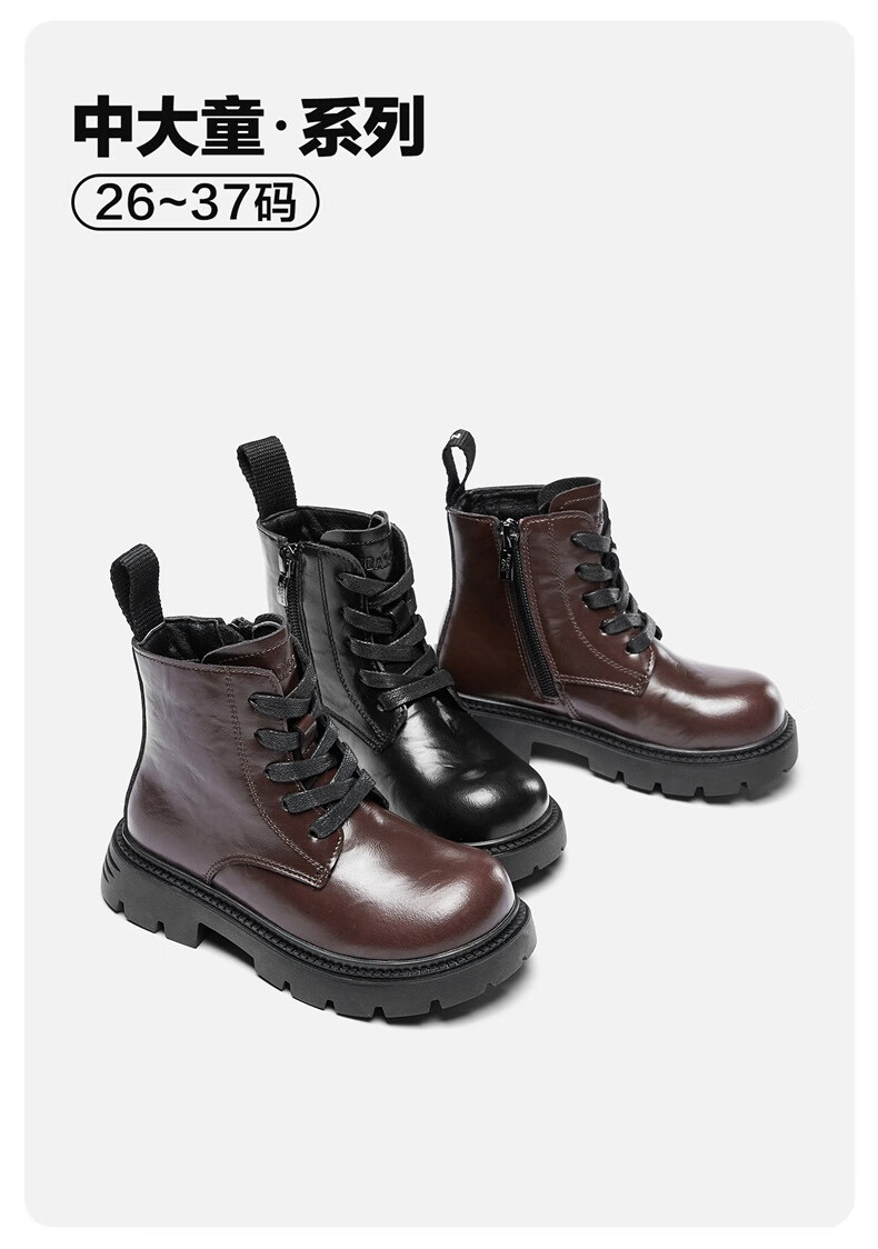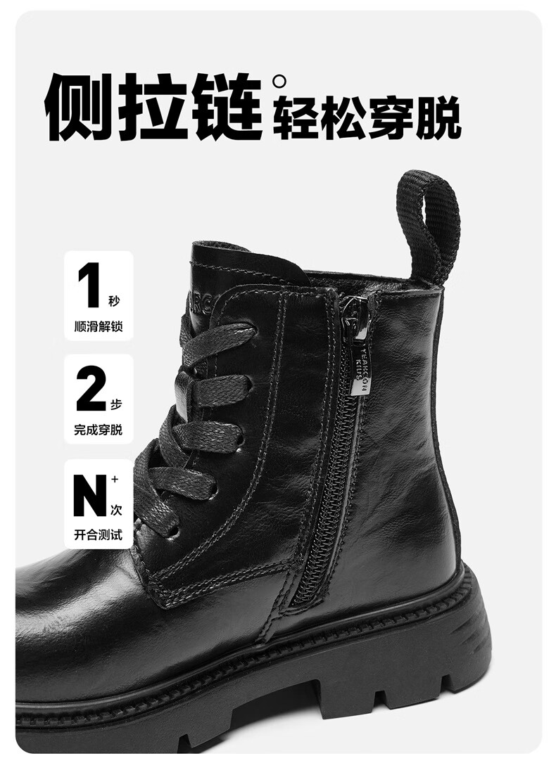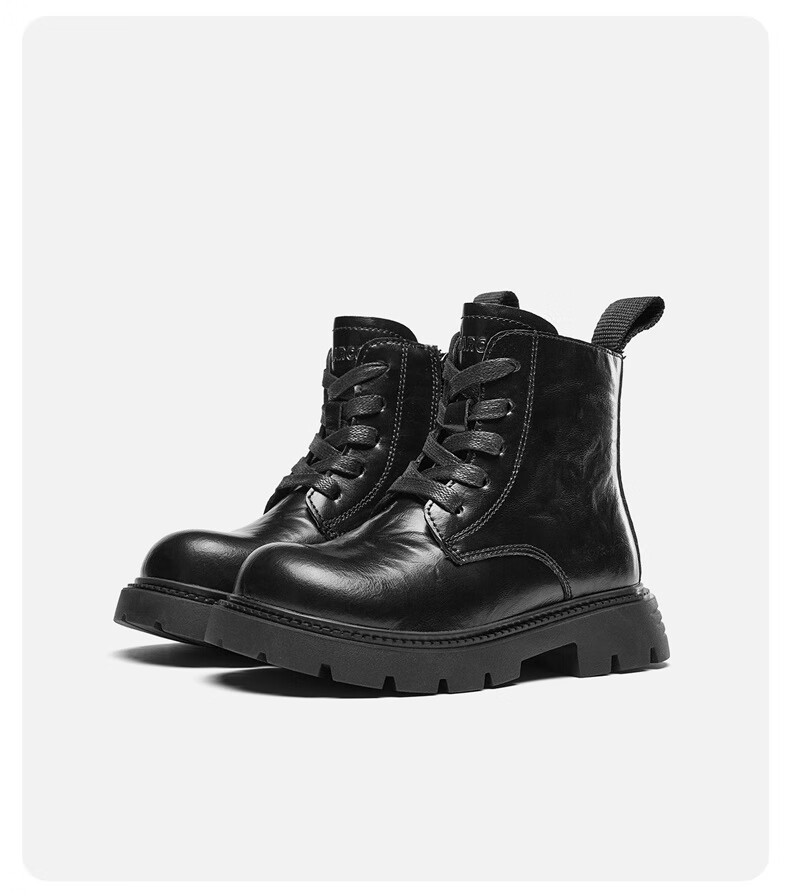 Yierkan children's shoes autumn and winter boots for middle and large children Martin boots short boots for boys and girls British leather boots black 2 34