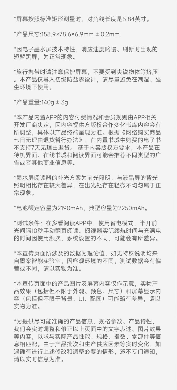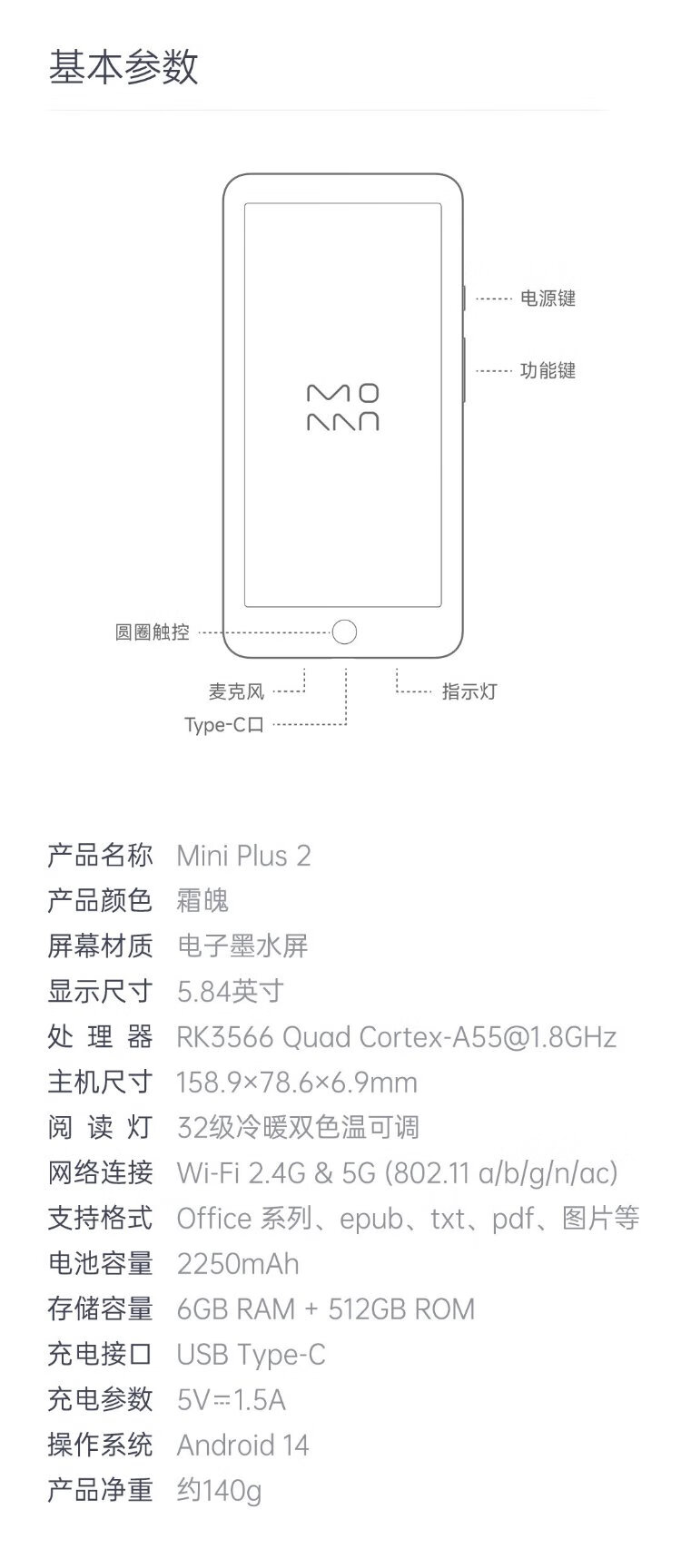 Ink desk electronic paper book Mini Plus2 5.84-inch ink screen, frost white, e-book reader, lightweight and portable, pocket commuting 6+512G