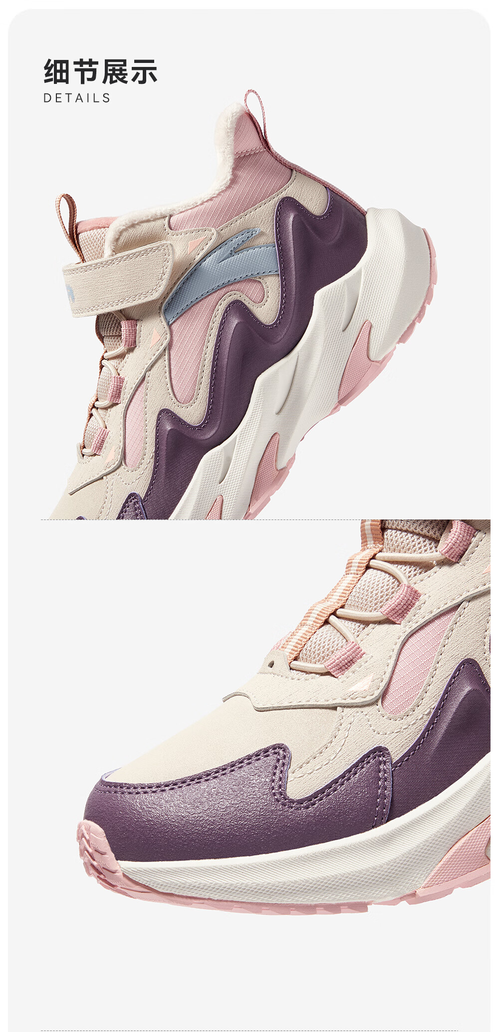 Anta children's snow boots for girls and boys, two cotton shoes, girls' winter warm plus velvet sports shoes, winter shoes, cotton boots A22546904