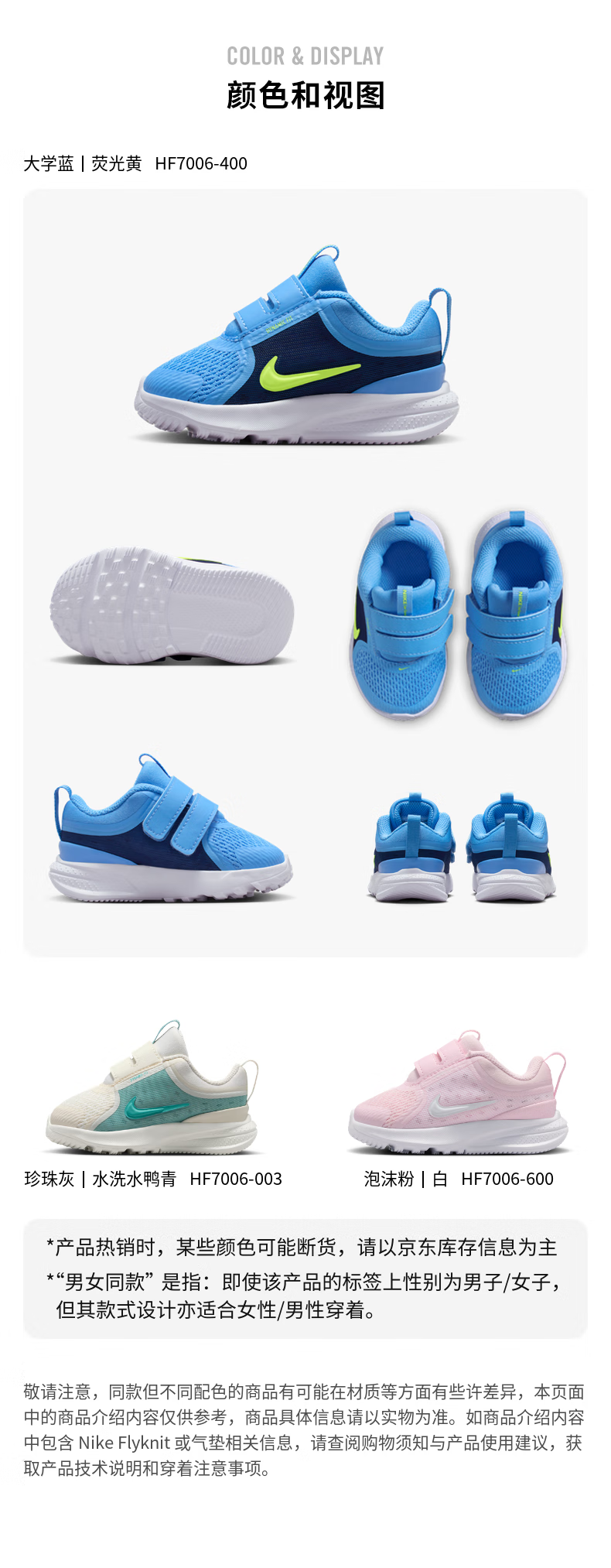 NIKE STAR RUNNER 5 HF7006 baby breathable Velcro sneakers mesh