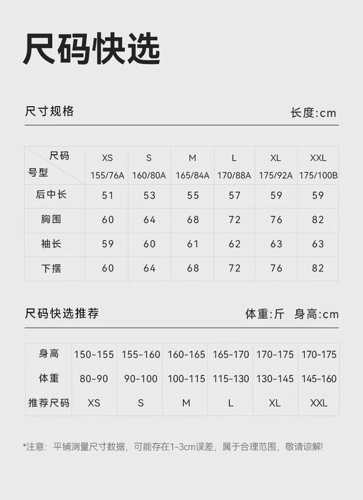 China (cm) 160-165/84-86 165-170 / 88-90 167-172 / 92-96 168-173 / 98-102 170-176 / 106-110