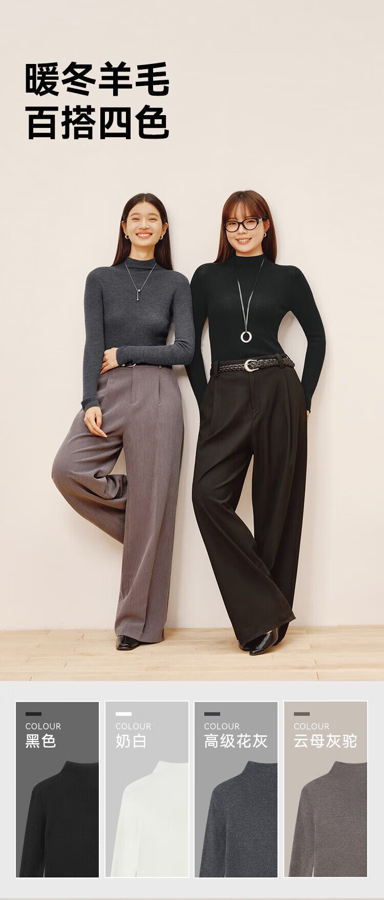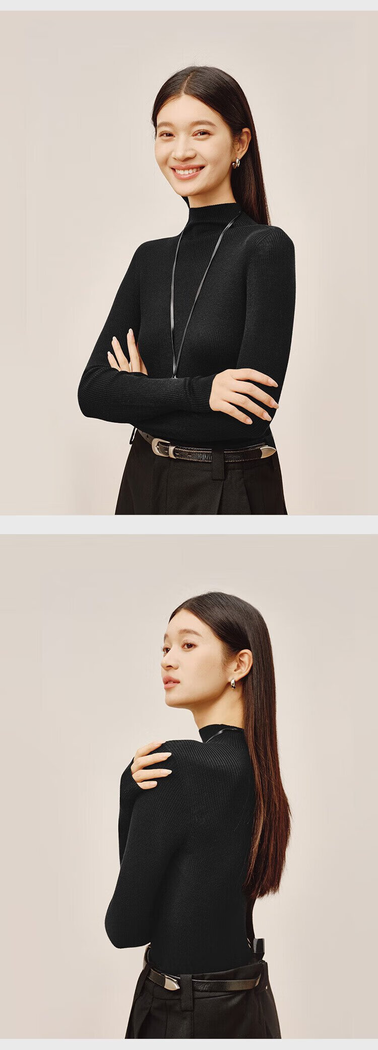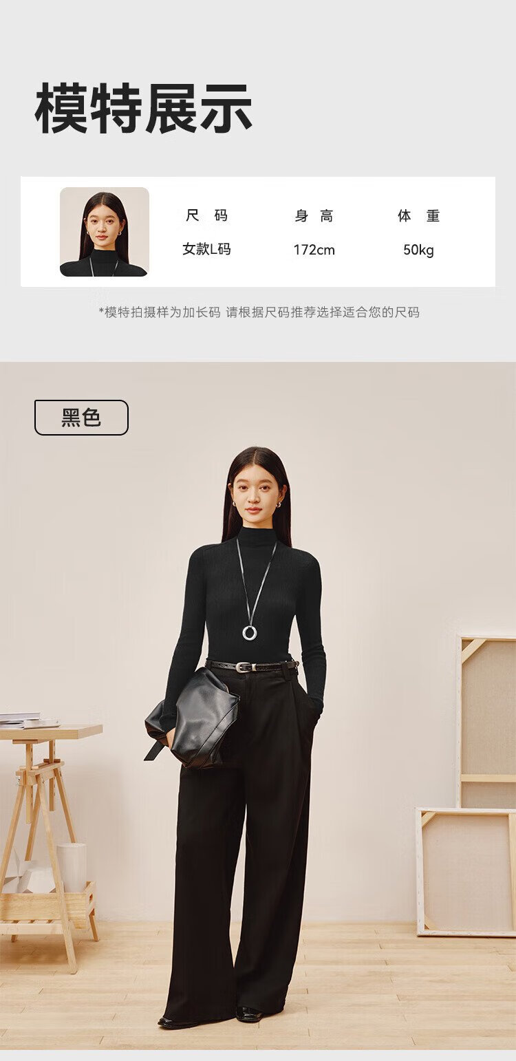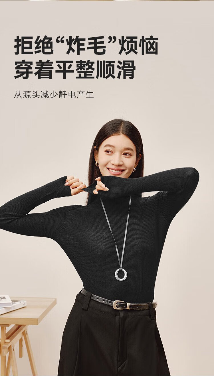 Made in Tokyo 100% wool sweater sweater women's turtleneck bottoming sweater 25 autumn and winter new style black M