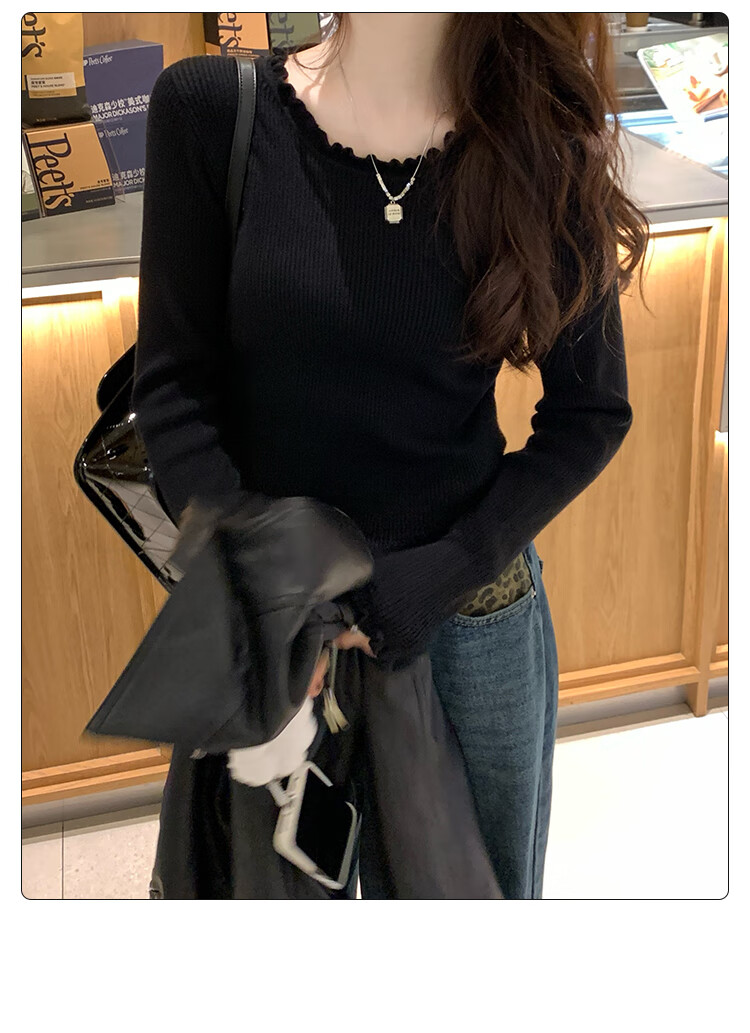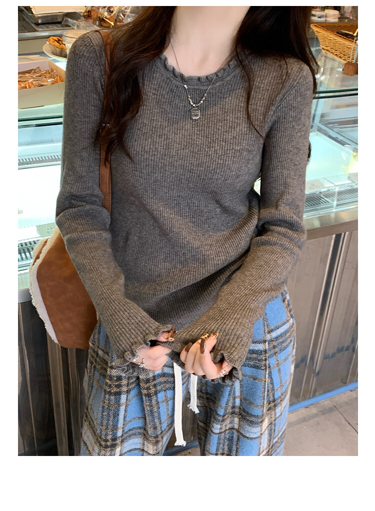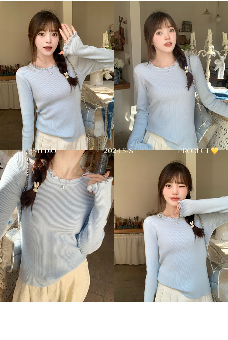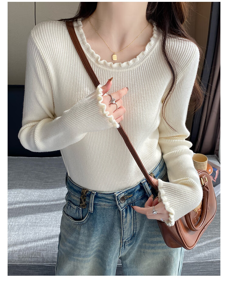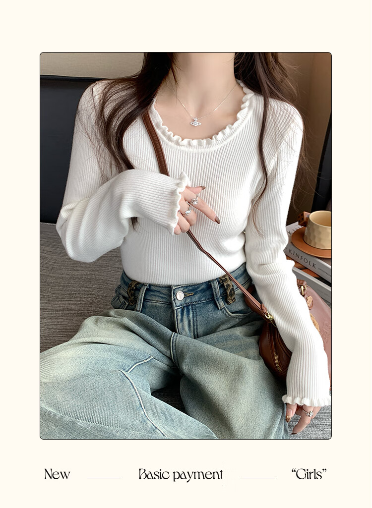 Yu Zhaolin (YUZHAOLIN) fungus edge knitted bottoming shirt for women 2025 autumn and winter new style sweater with round neck long sleeve small fragrance top