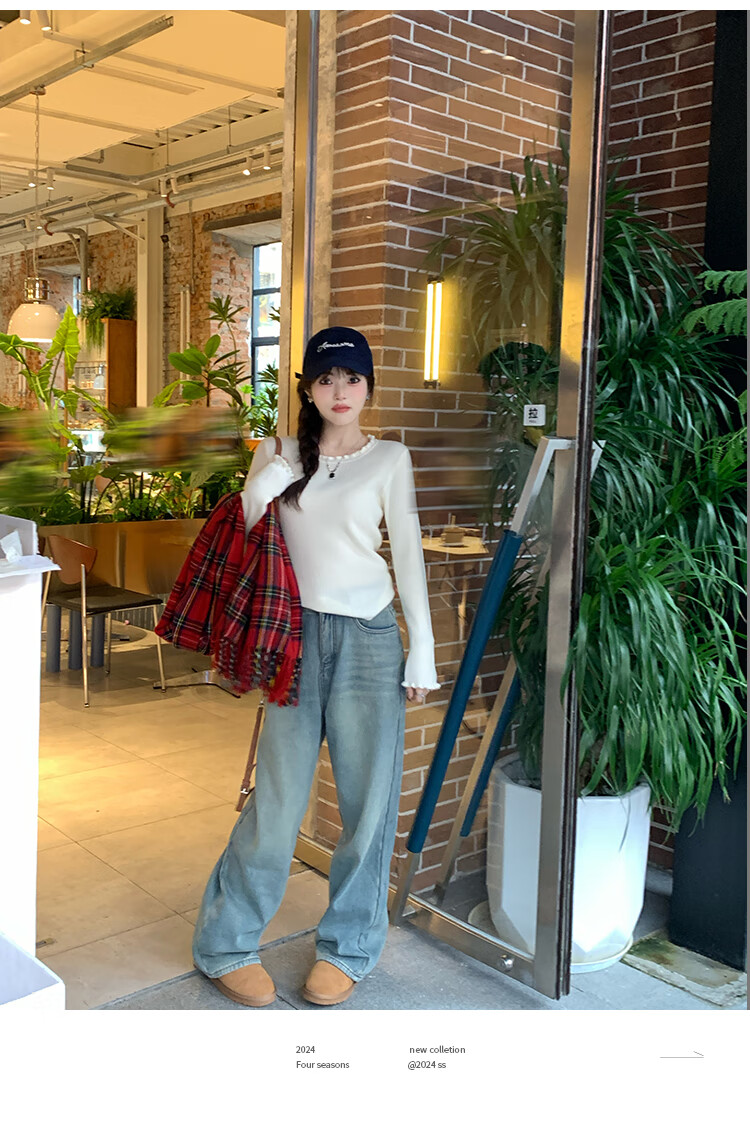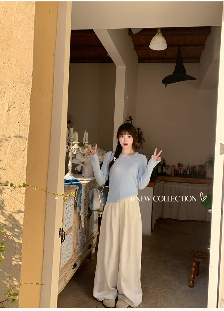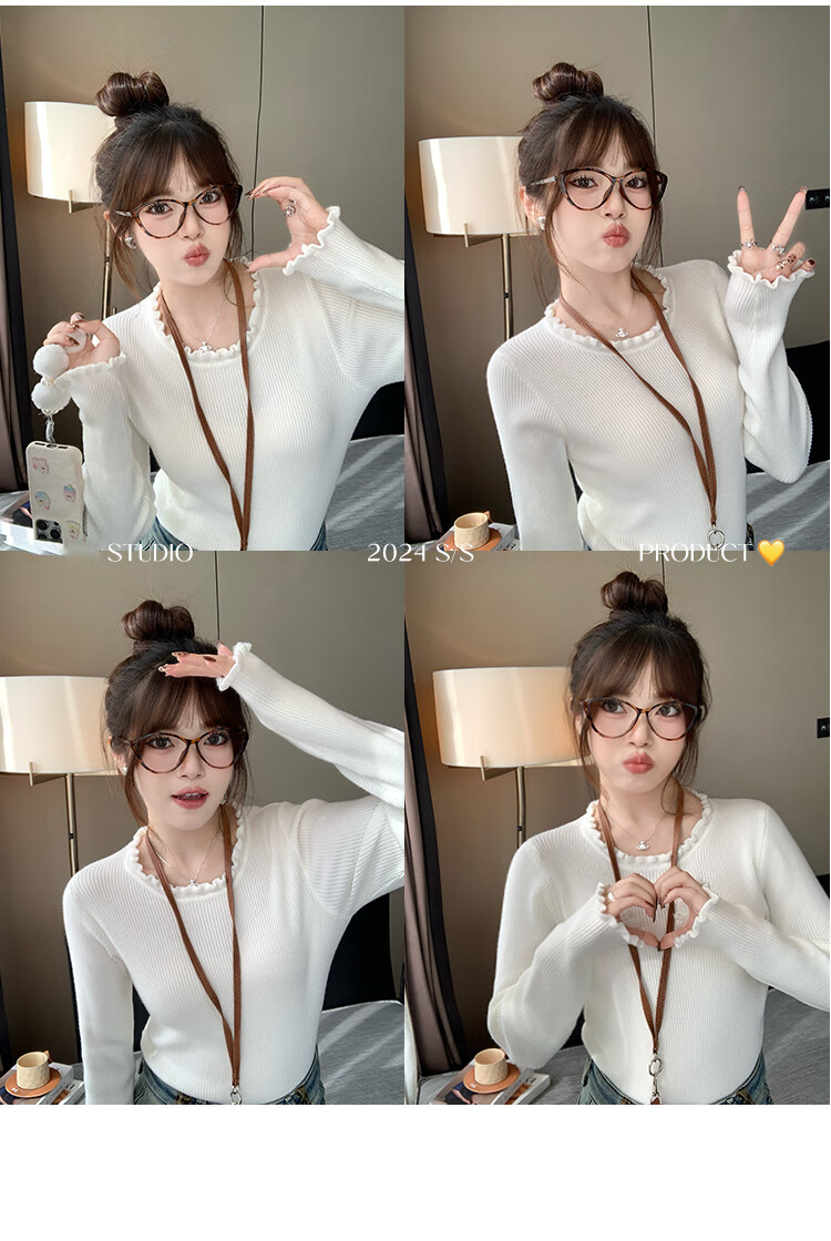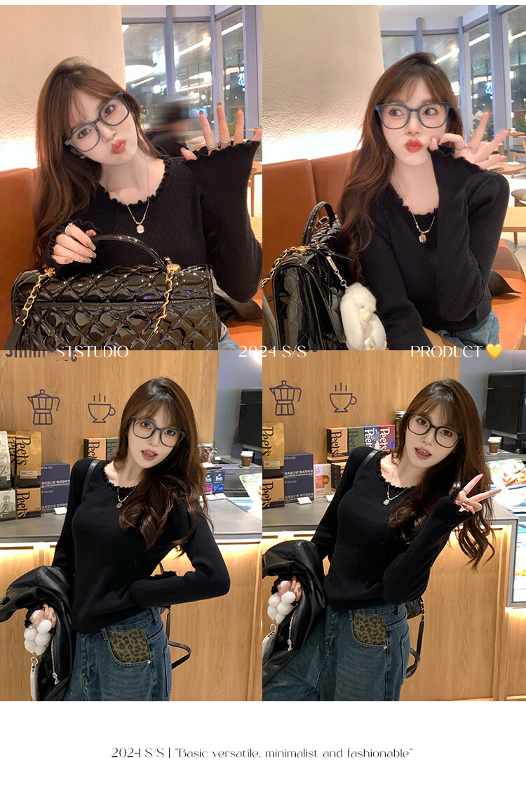 Yu Zhaolin (YUZHAOLIN) fungus edge knitted bottoming shirt for women 2025 autumn and winter new style sweater with round neck long sleeve small fragrance top