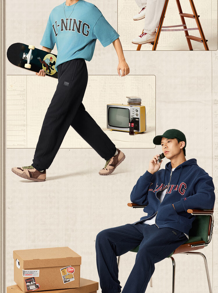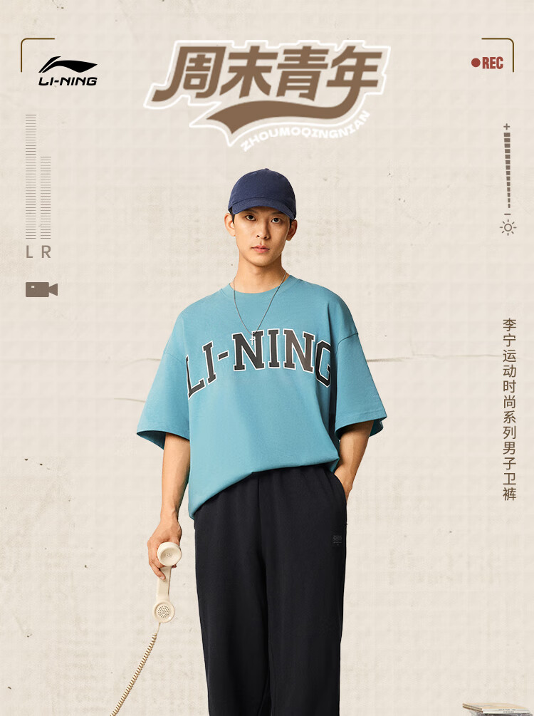 Li Ning sweatpants men's 25 autumn and winter cotton retro loose elastic leggings trousers AKLV255