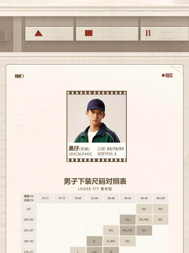 China (cm) 165 / 88-90 170 / 96-98 175 / 108-110 180 / 118-122 185 / 126-130