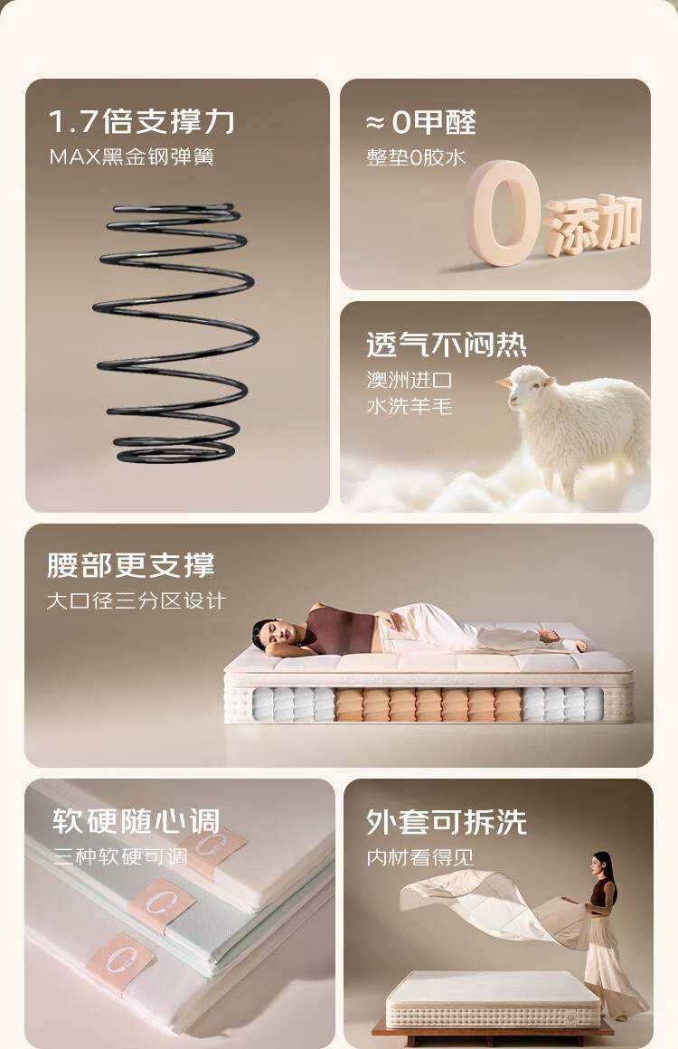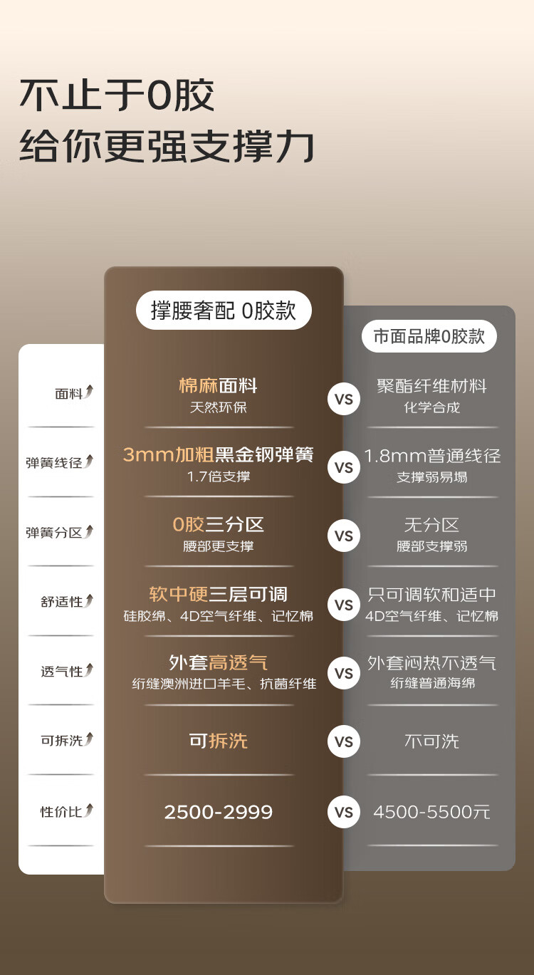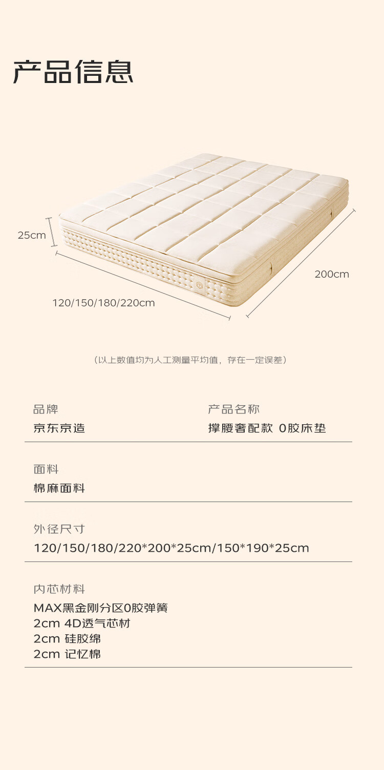 Jingdong spring mattress 0 glue large diameter adjustable soft and hard washable spine mattress 1.8 2 meters