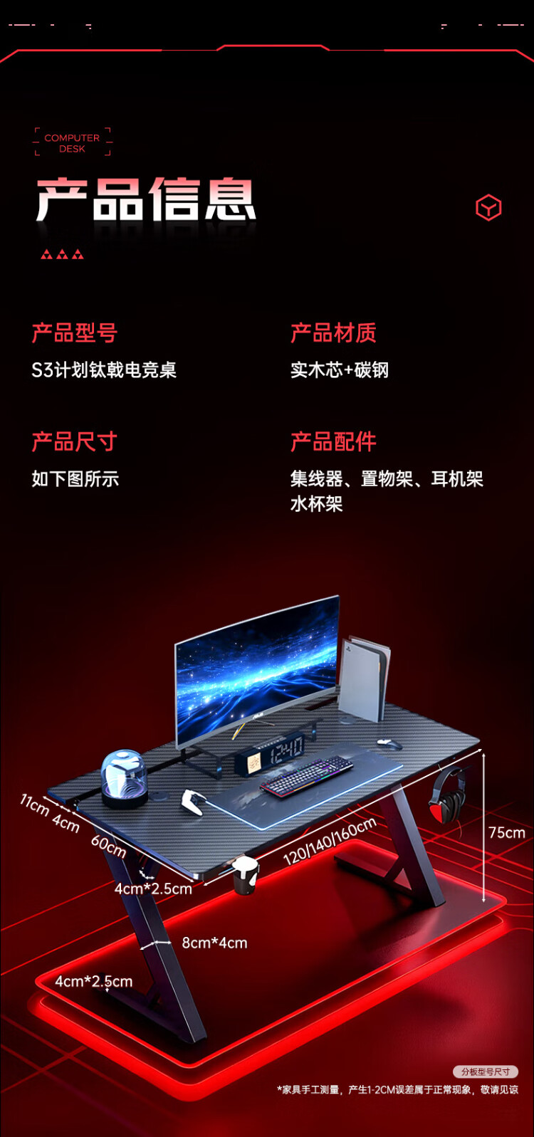 Quanpinwu Esports Desk Computer Desk Desktop Titanium Gaming Desk Solid Wood Halberd S3 Home Robotic Arm Double Office Desk Creation