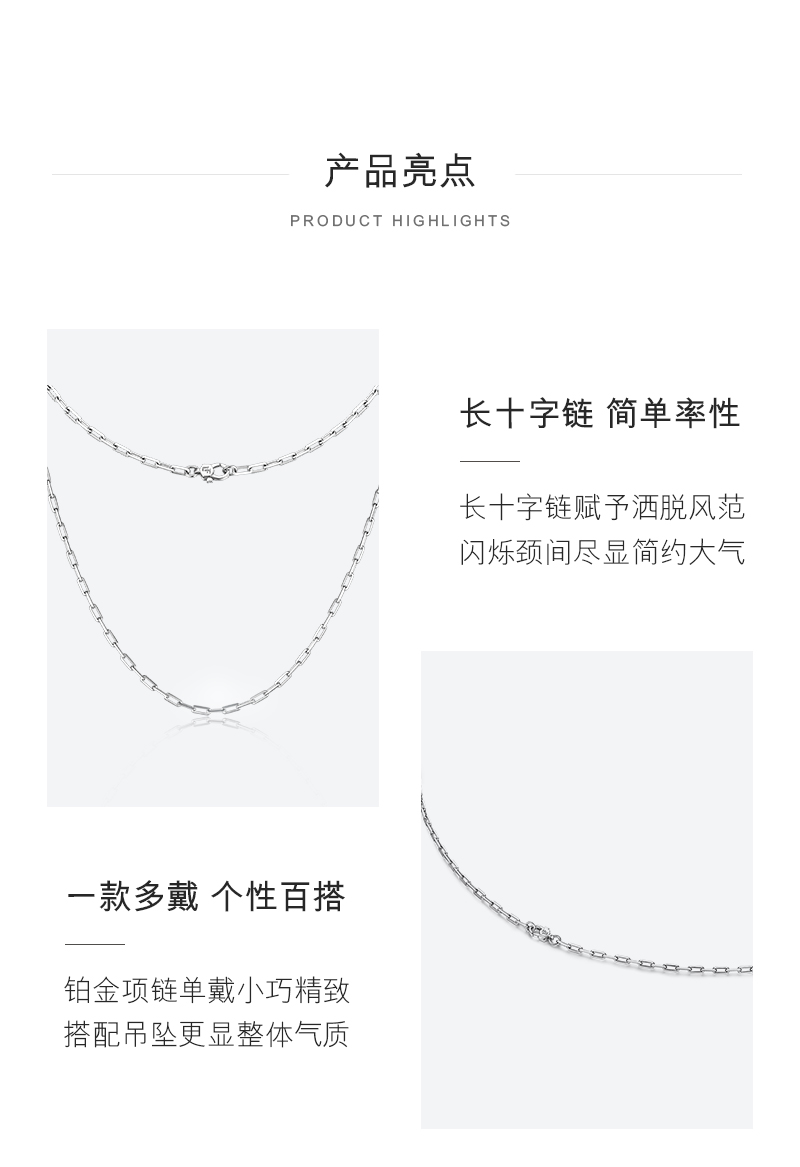 Lukfook Jewelry Platinum 950 Long Cross Chain Plain Chain Platinum Necklace Men's Gift Price L04TBPN0017 50cm-6.44g (including labor cost 535 yuan)