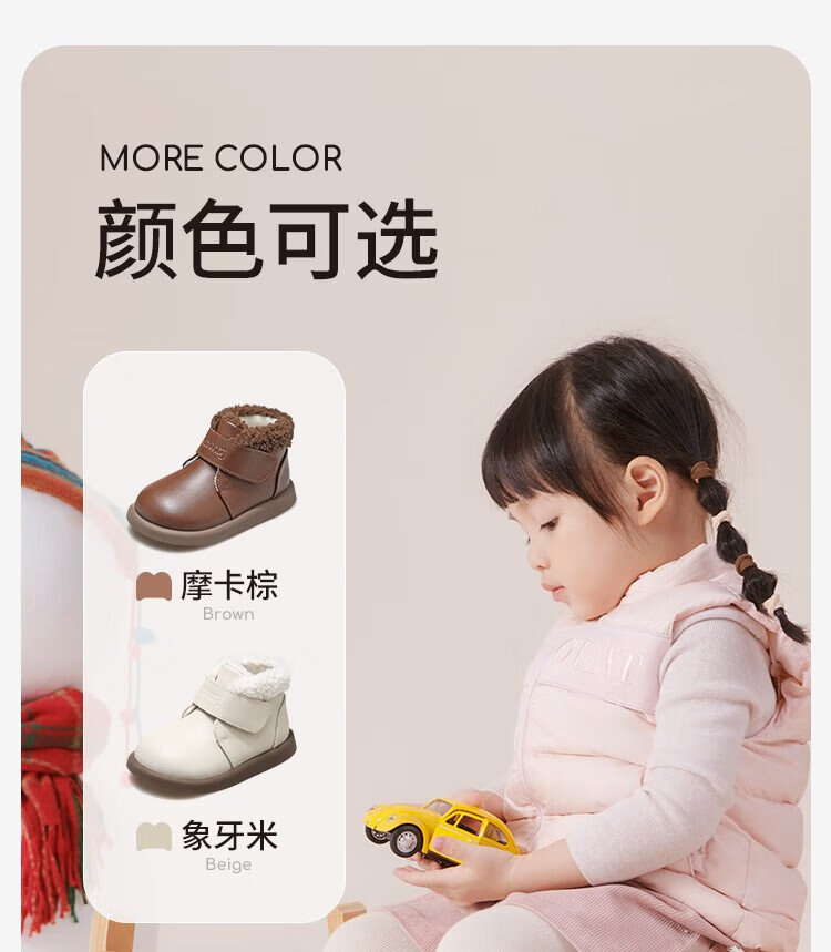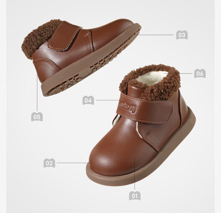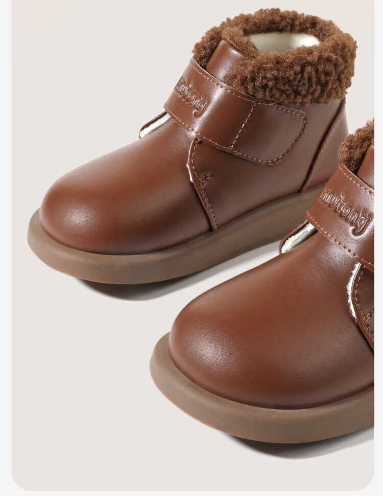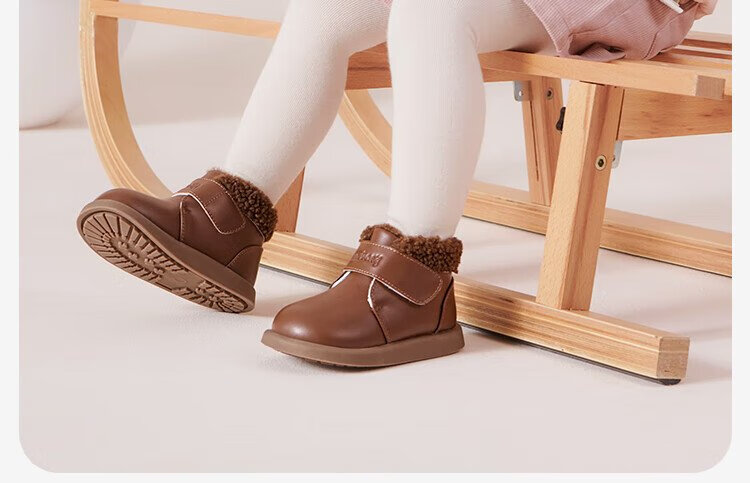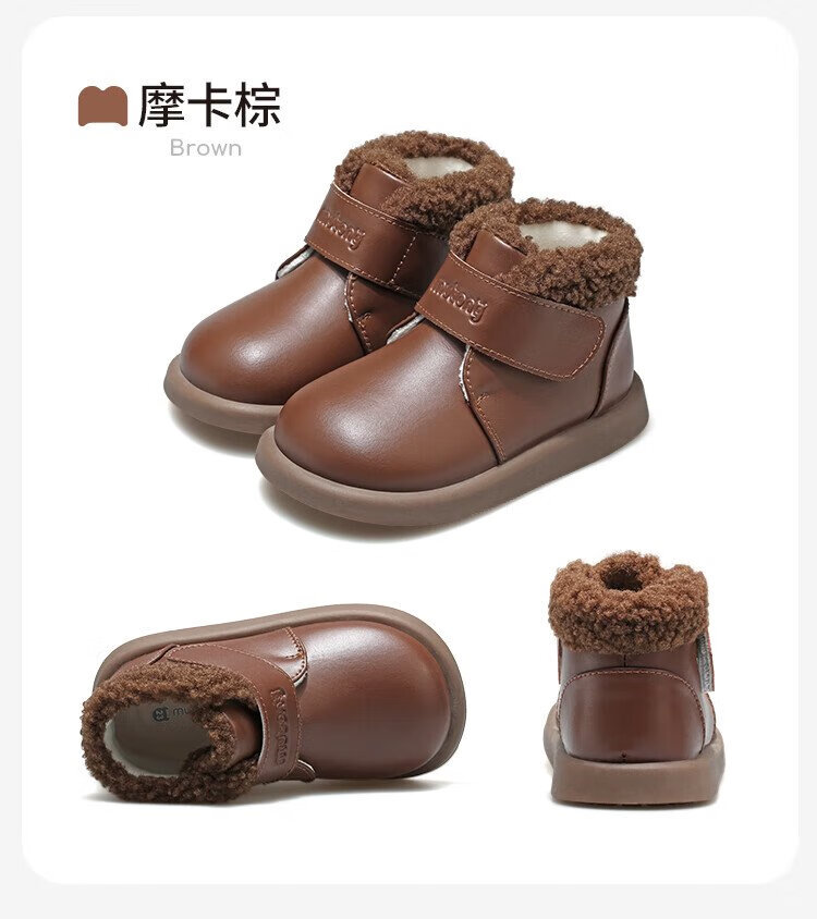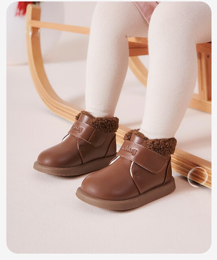 Shepherd boy baby boots winter velvet warm leather boots stylish soft sole Martin boots little girl short boots Mocha Brown 28