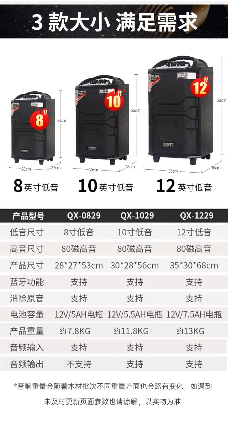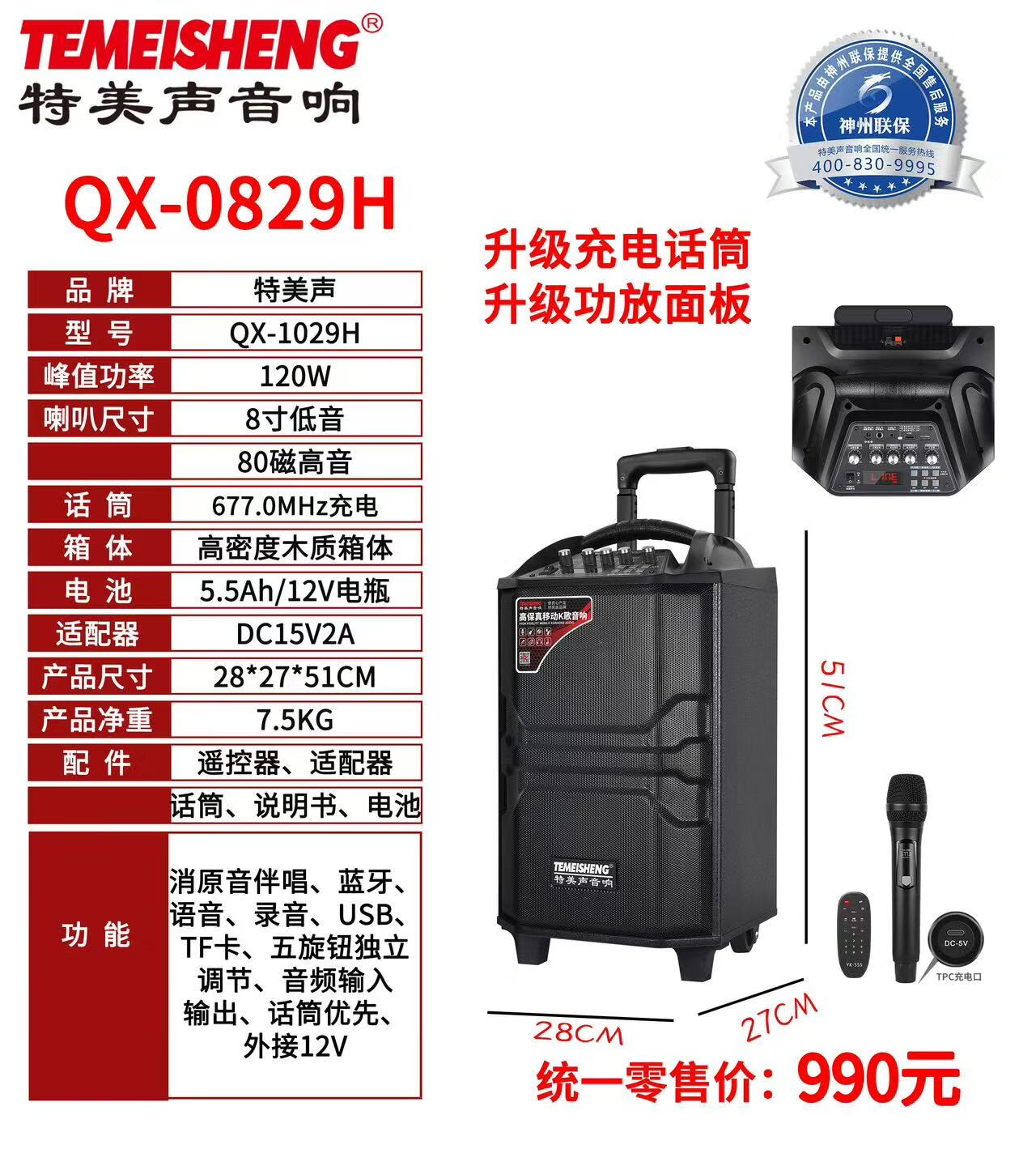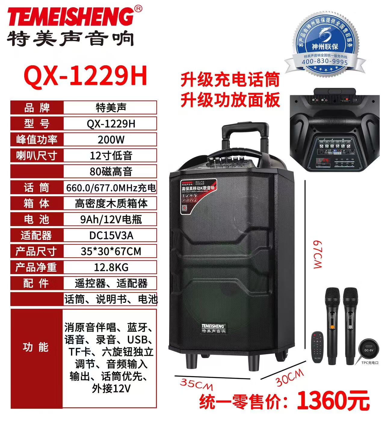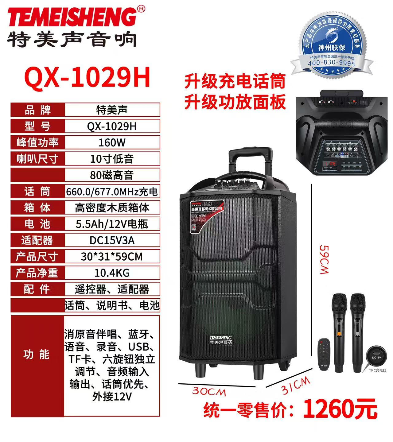 TEMEISHENG QX1229H Square Dance Speaker Outdoor Portable Karaoke Bluetooth Trolley Mobile High-Power Singing Microphone Speaker 10-inch Standard Configuration + Two Handheld