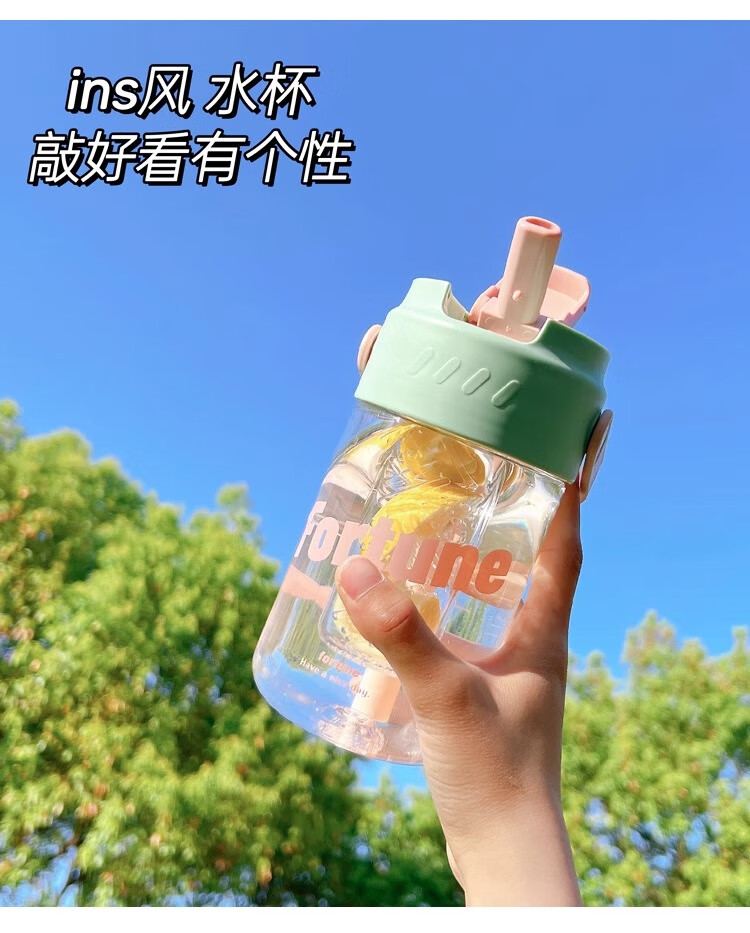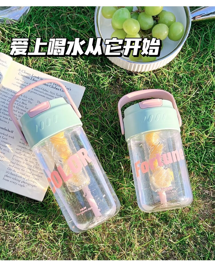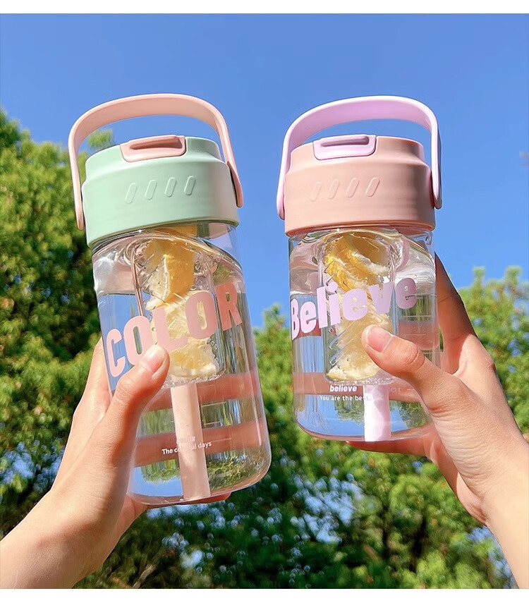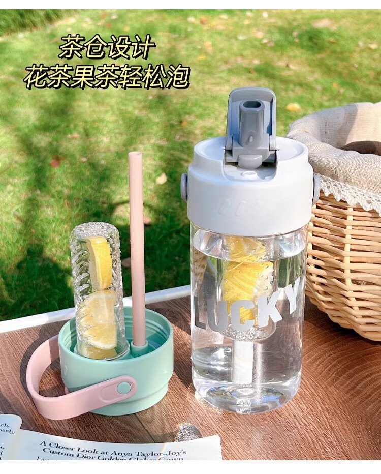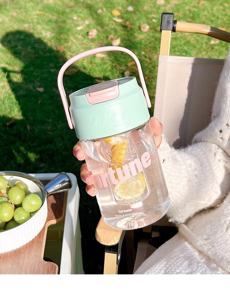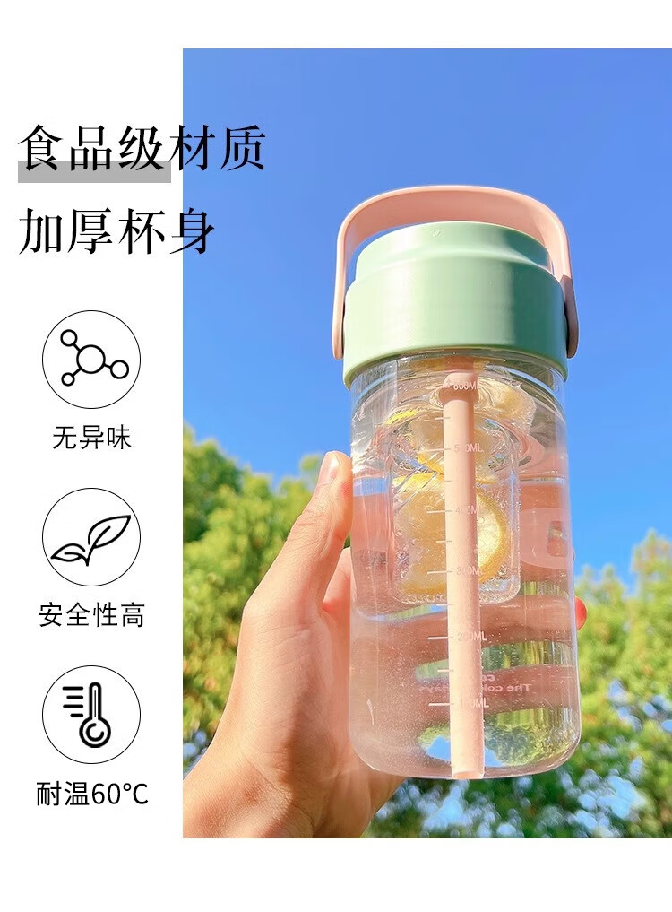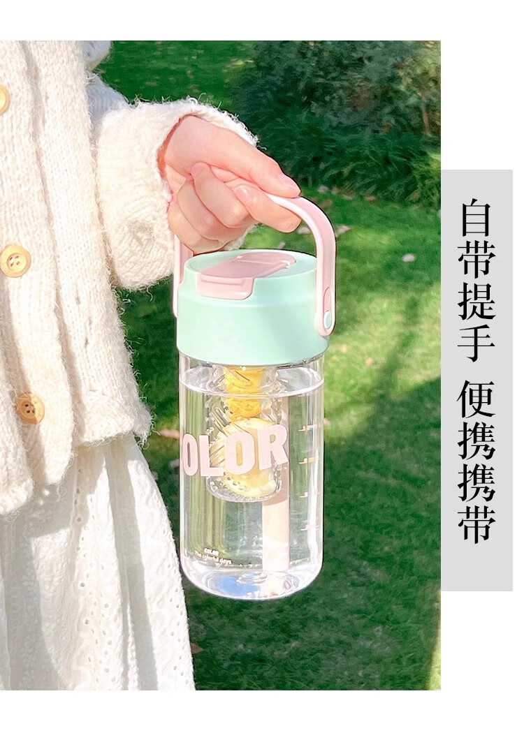 PINYU Plastic Cup Large Capacity Straw Cup Convenient Cup High Temperature Resistance With Tea Separator High-Looking Milk Tea Green 600ml