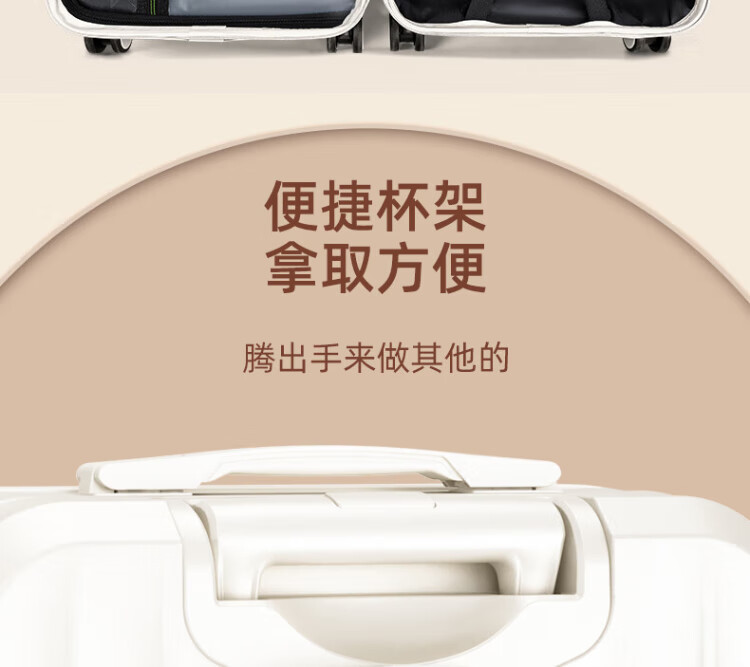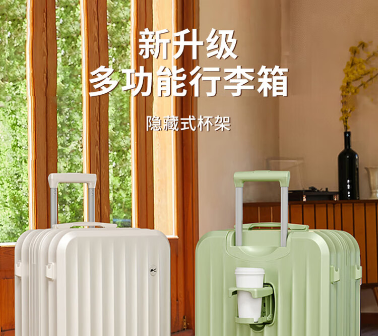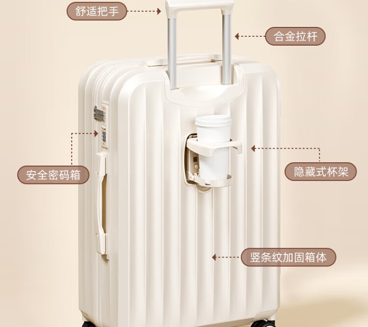 Pull back suitcase, women's boarding case, trolley case, men's leather case, small password suitcase with cup holder, 20 inches white