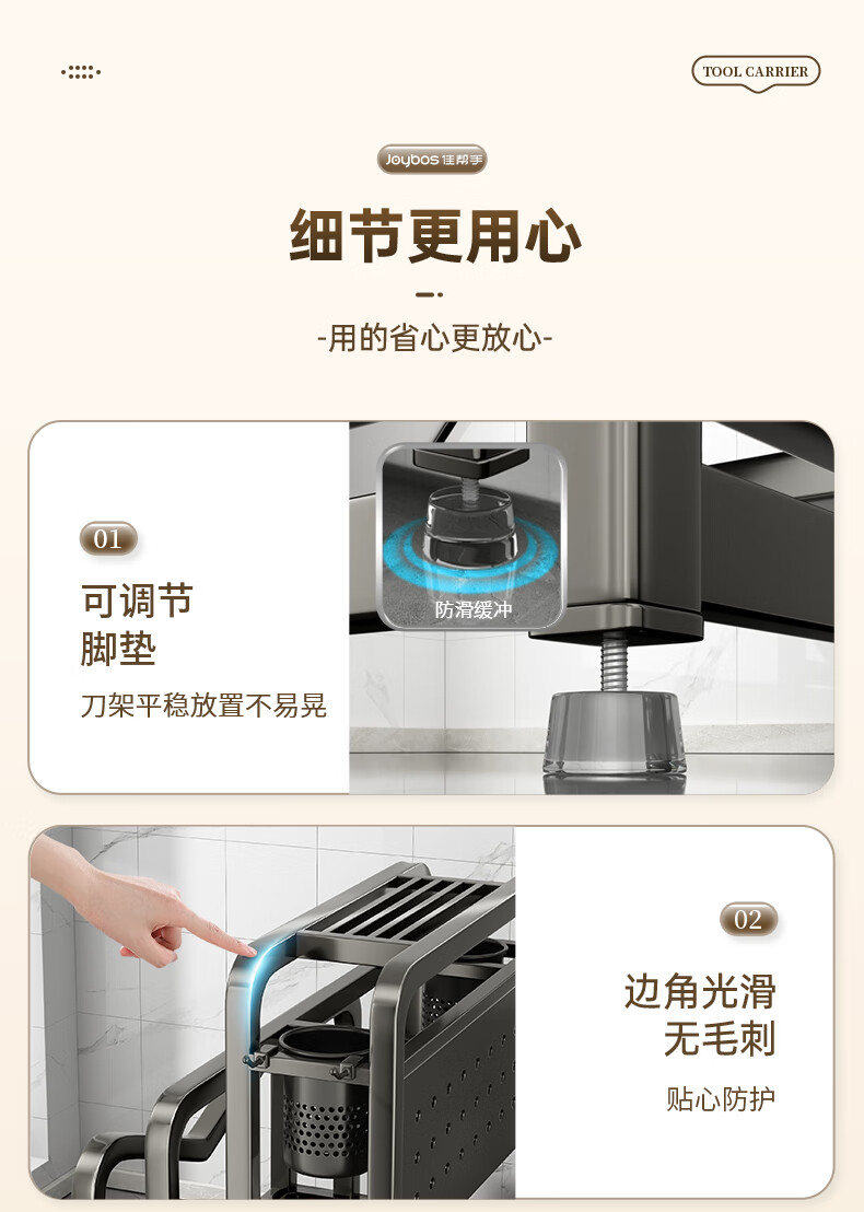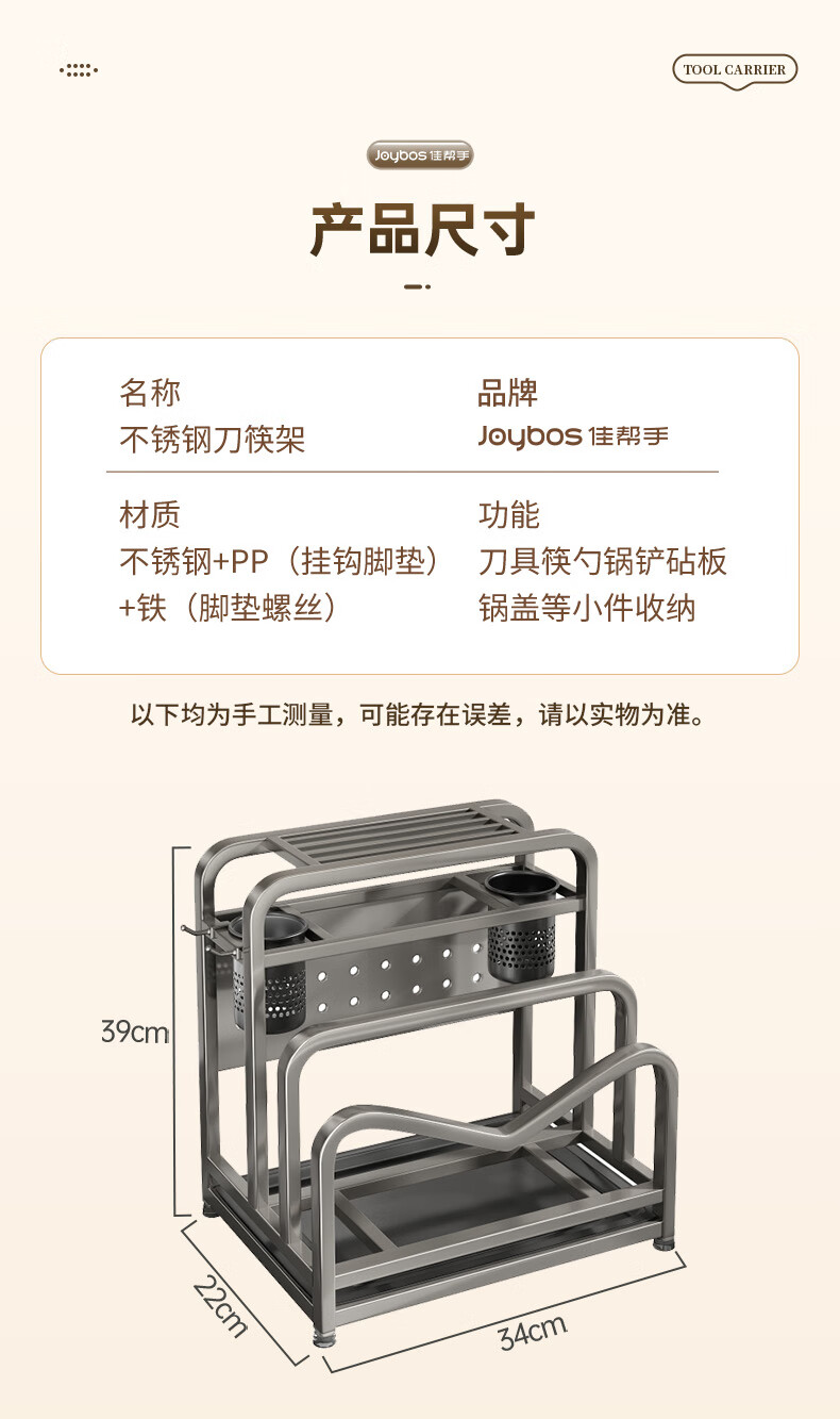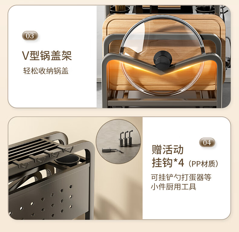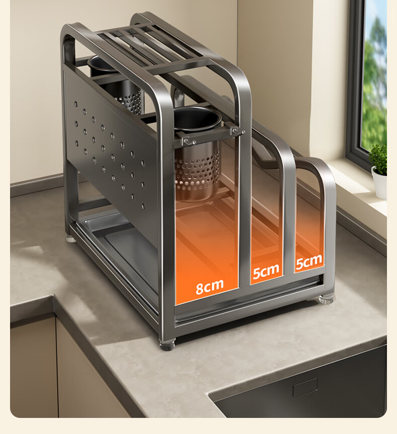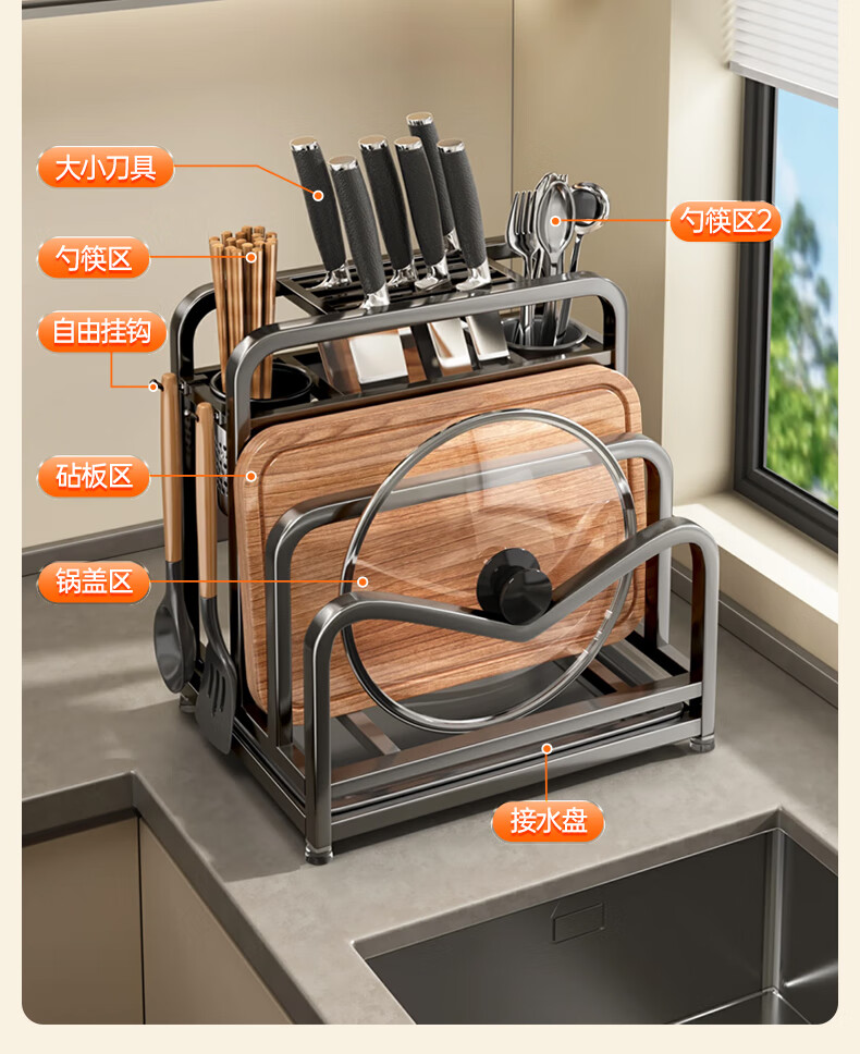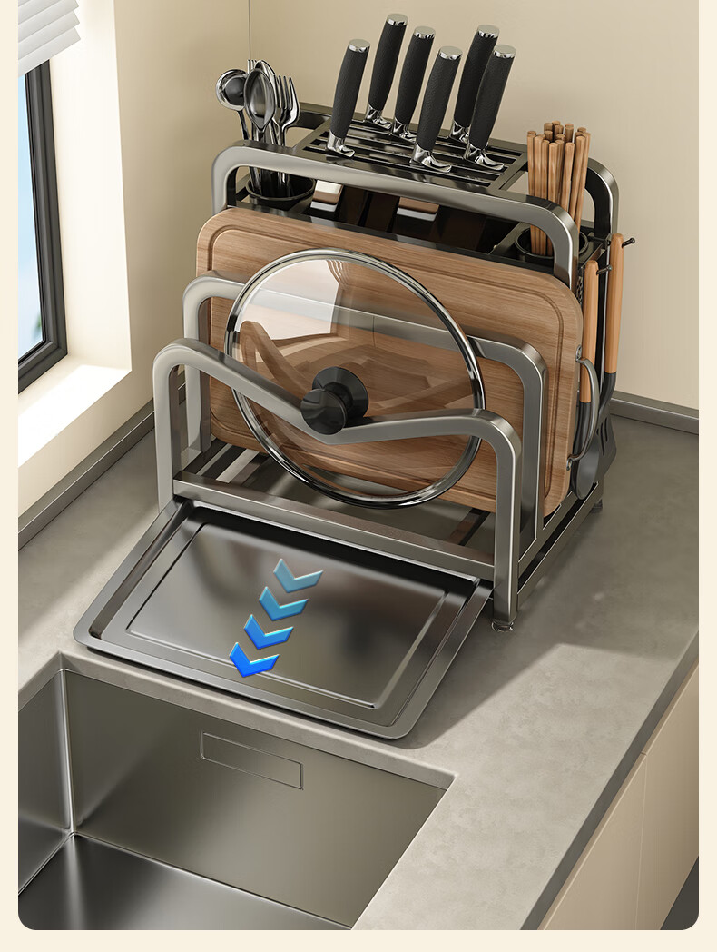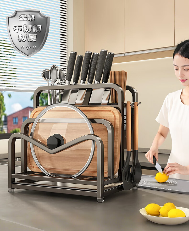 Jia helper stainless steel knife holder kitchen knife storage rack cutting board kitchen knife double chopping board knife chopstick cage pot lid storage integrated shelf