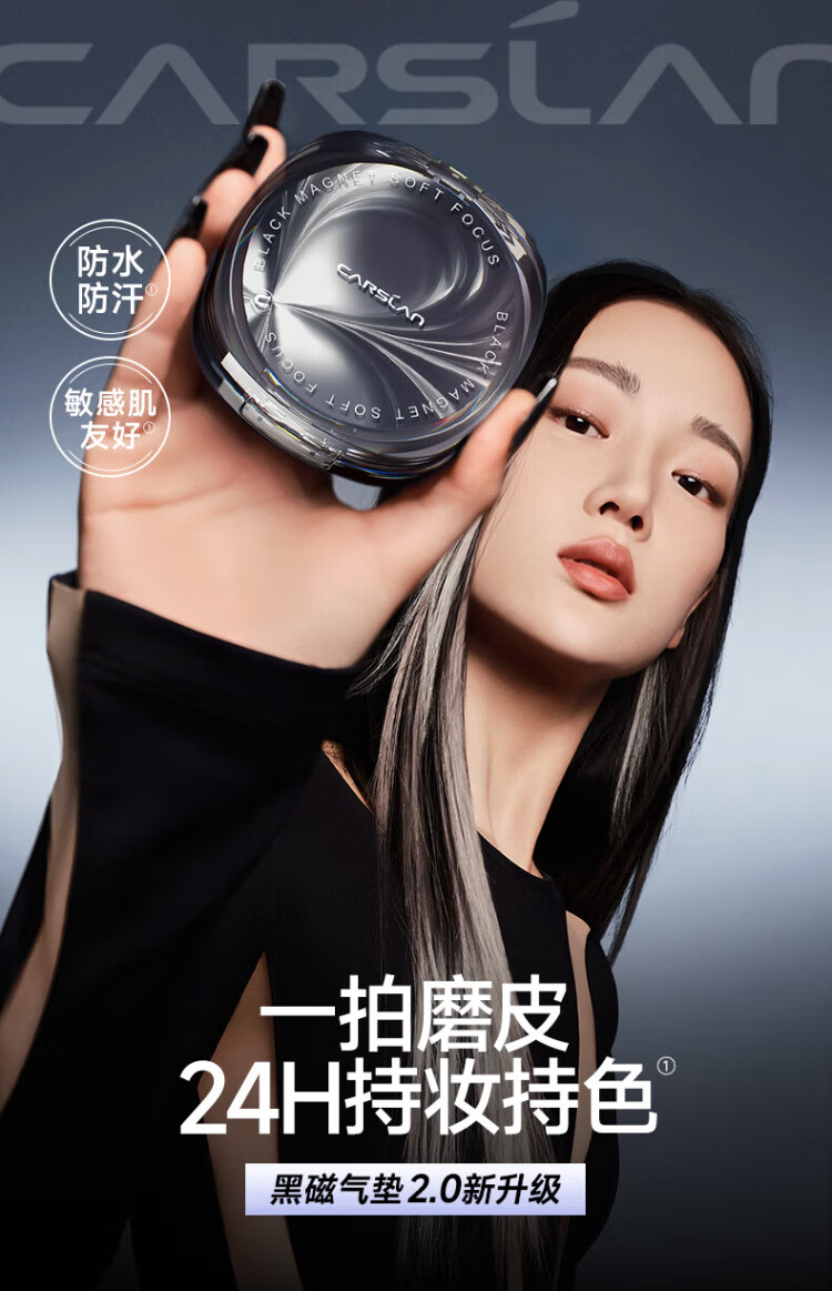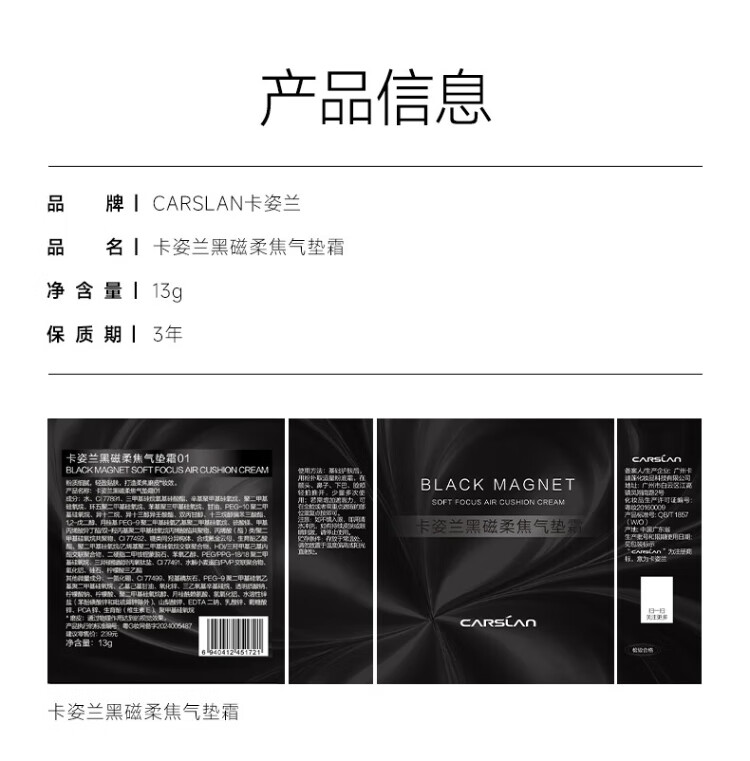 Carslan 2.0 Black Magnetic Air Cushion BB Cream Concealer Soft Focus Long-lasting Anti-sweat-proof Foundation 02 Color 11g*2 Birthday Gift
