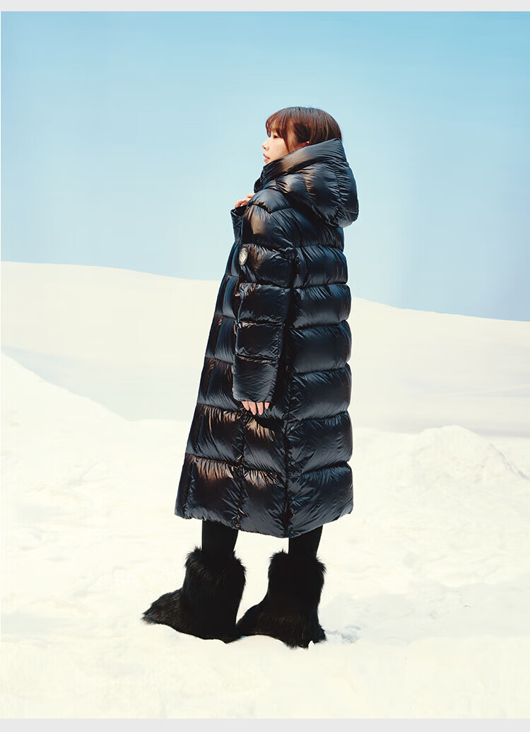 Made in Tokyo, Black Gold Series, Imported White Goose Down Jacket, Mid-Length Down Jacket, Women's Winter Jacket, Obsidian Black M