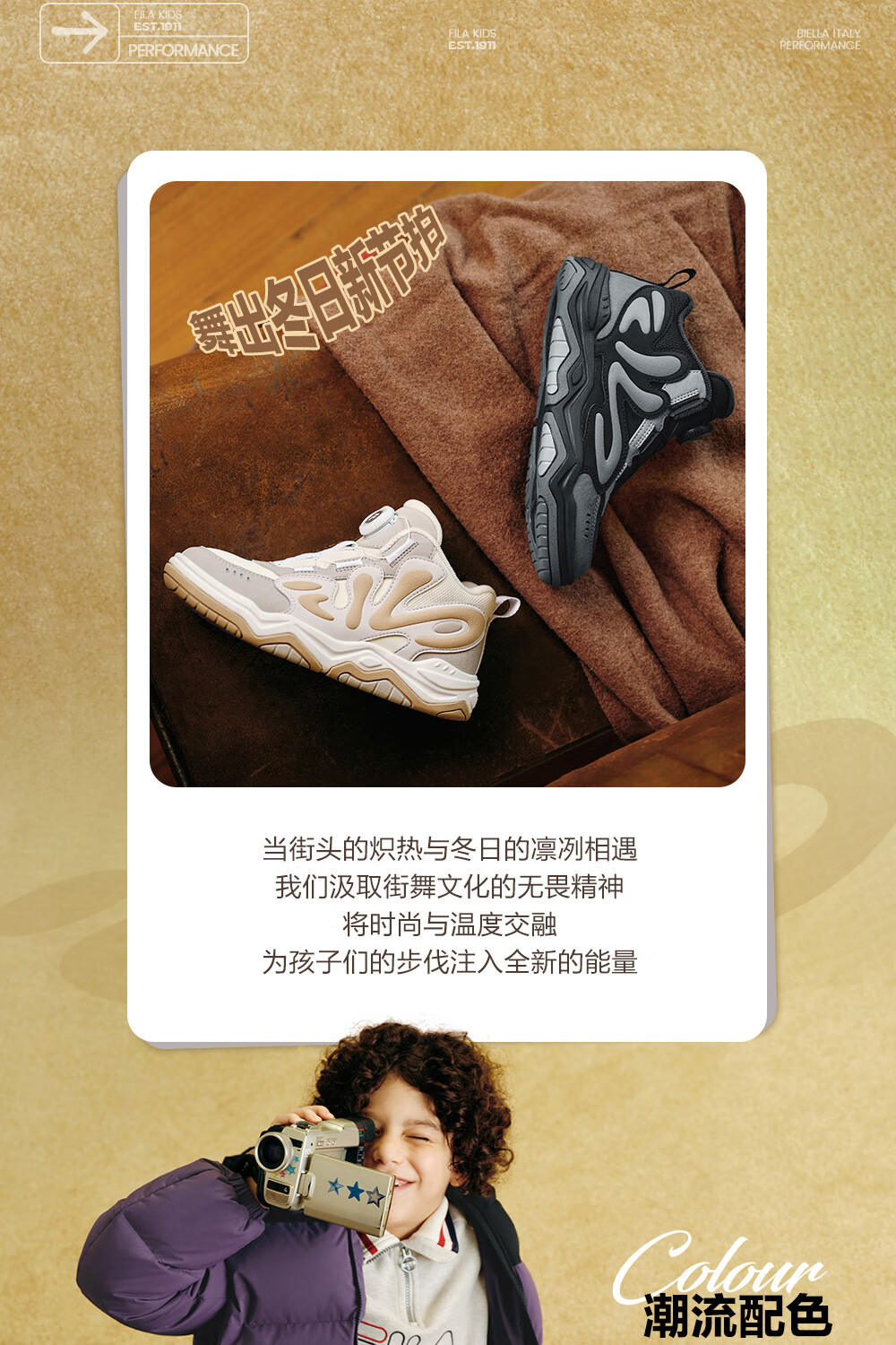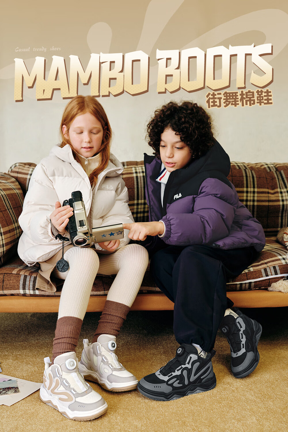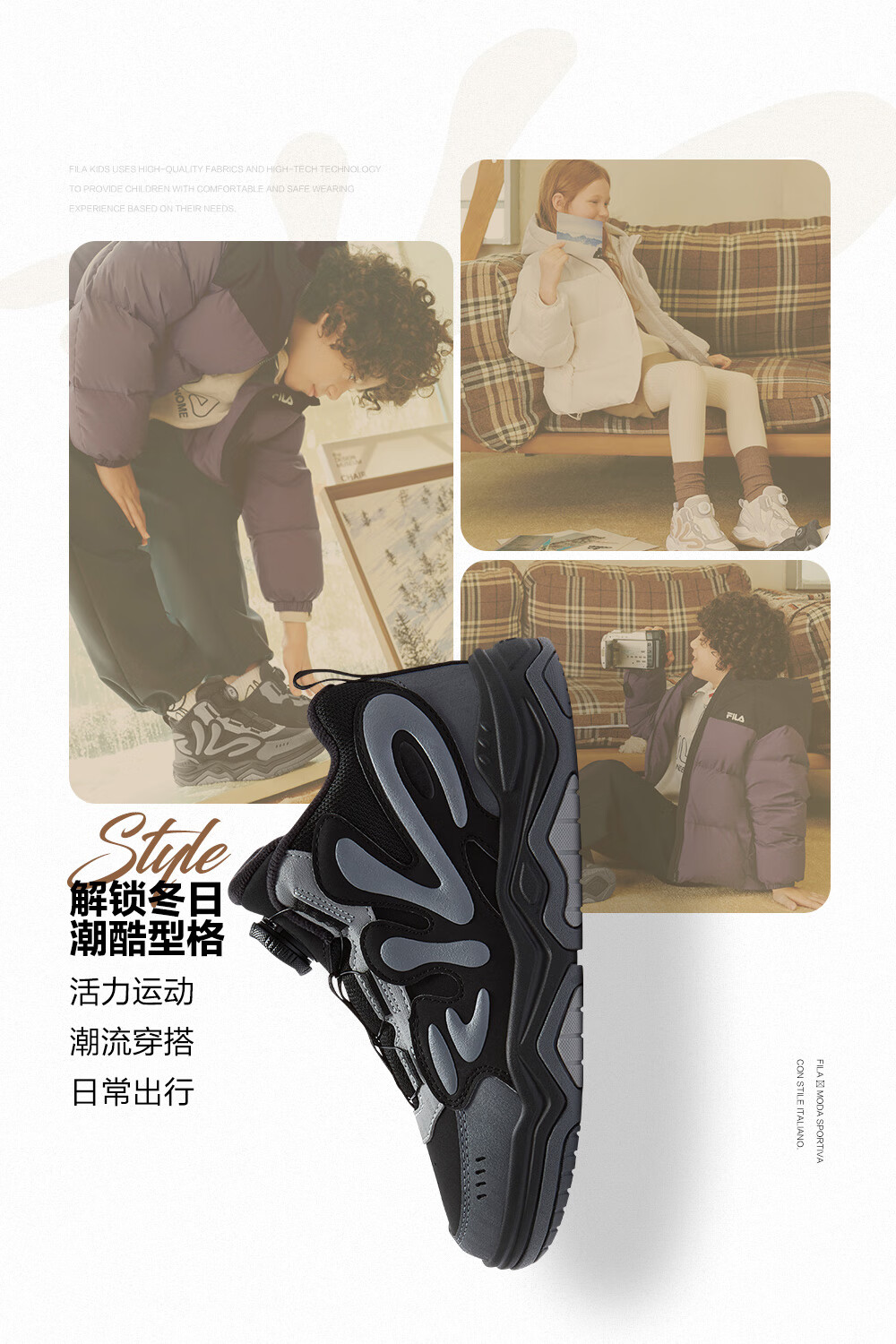 FILA children's shoes cotton boots 2025 winter boys' middle and large children's cotton shoes
