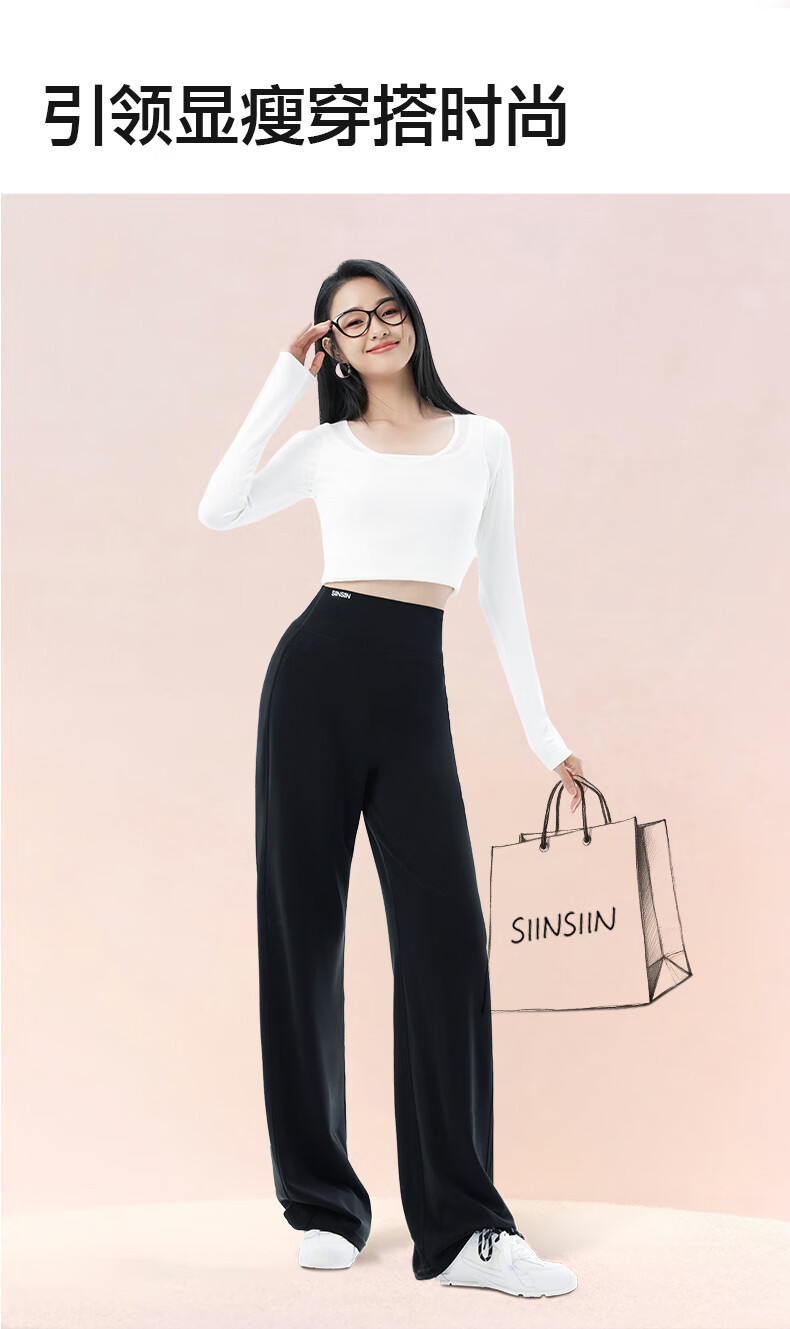 SIINSIIN Ju Jingyi's same style straight-leg pants for women 2025 new autumn casual pants black wide-leg pants slimming sports pants