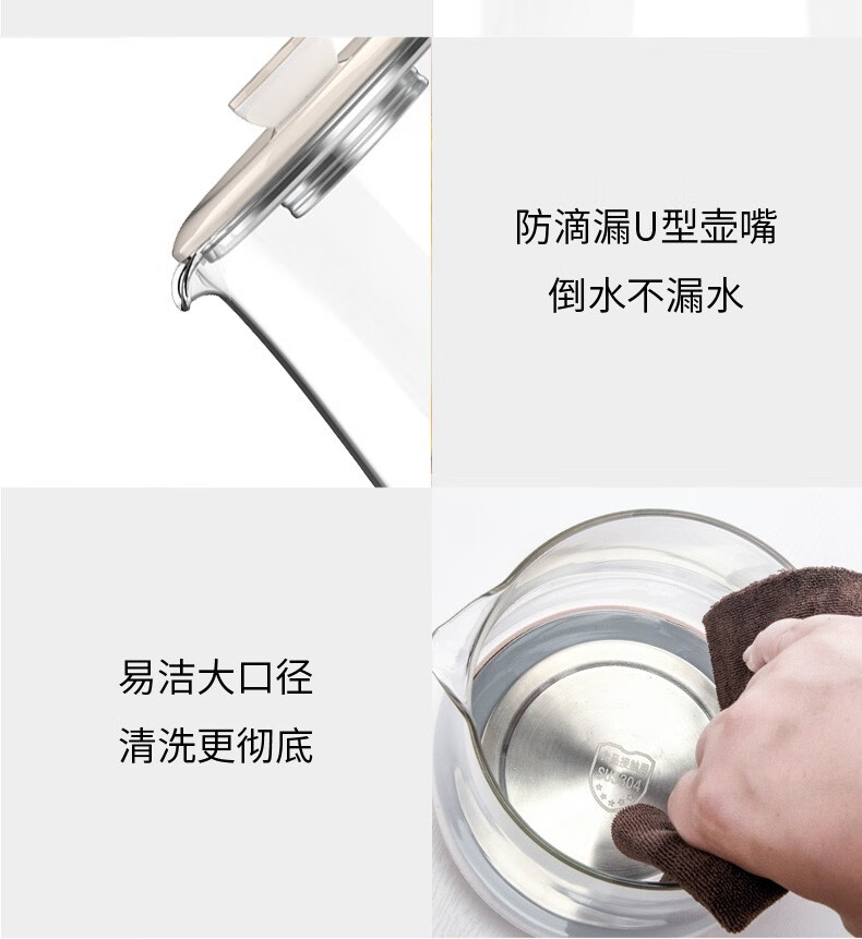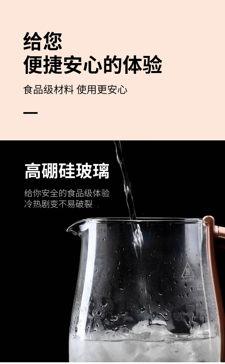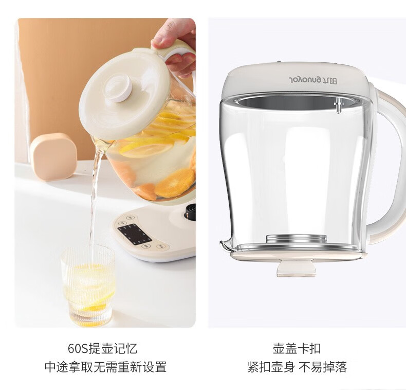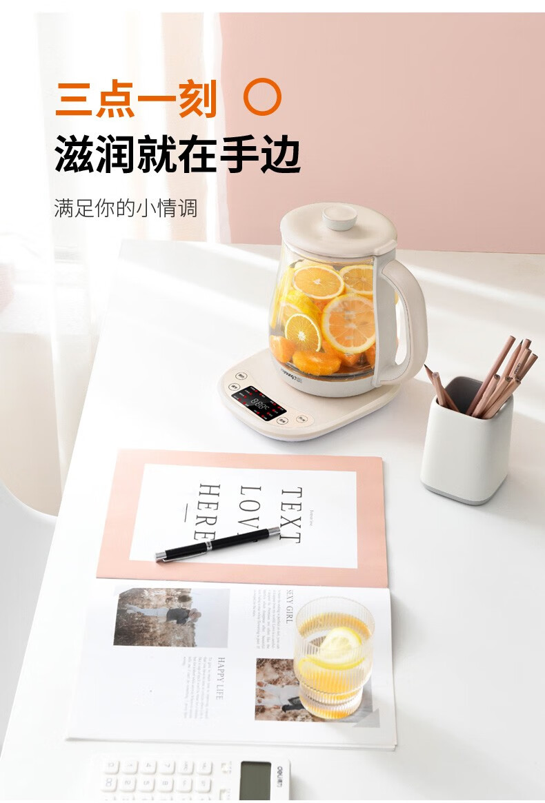 Joyoung 1.5L Large Capacity Health Kettle Household Constant Temperature Glass Electric Kettle Adjustable Temperature Fully Automatic Insulation Intelligent Anti-Spill Multifunctional Glass Decoction Kettle 304 Heating Plate Light Brown 1.5L 12 Functions
