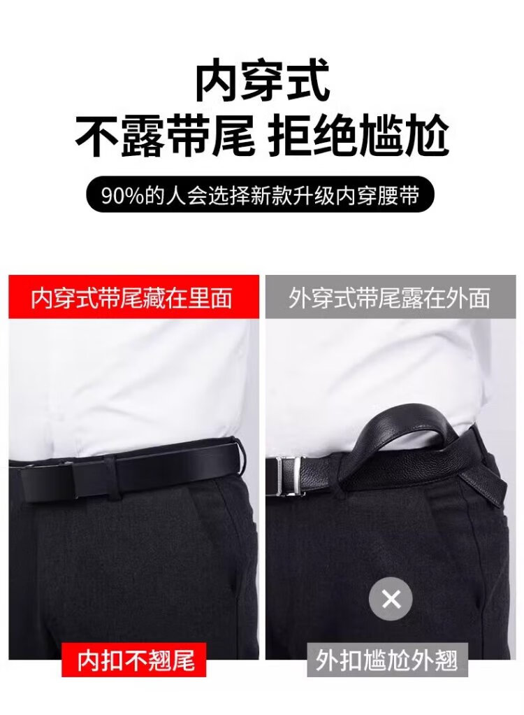 Pull back belt men's 2025 new pure cowhide automatic buckle belt toothless inner wear brand jeans belt versatile