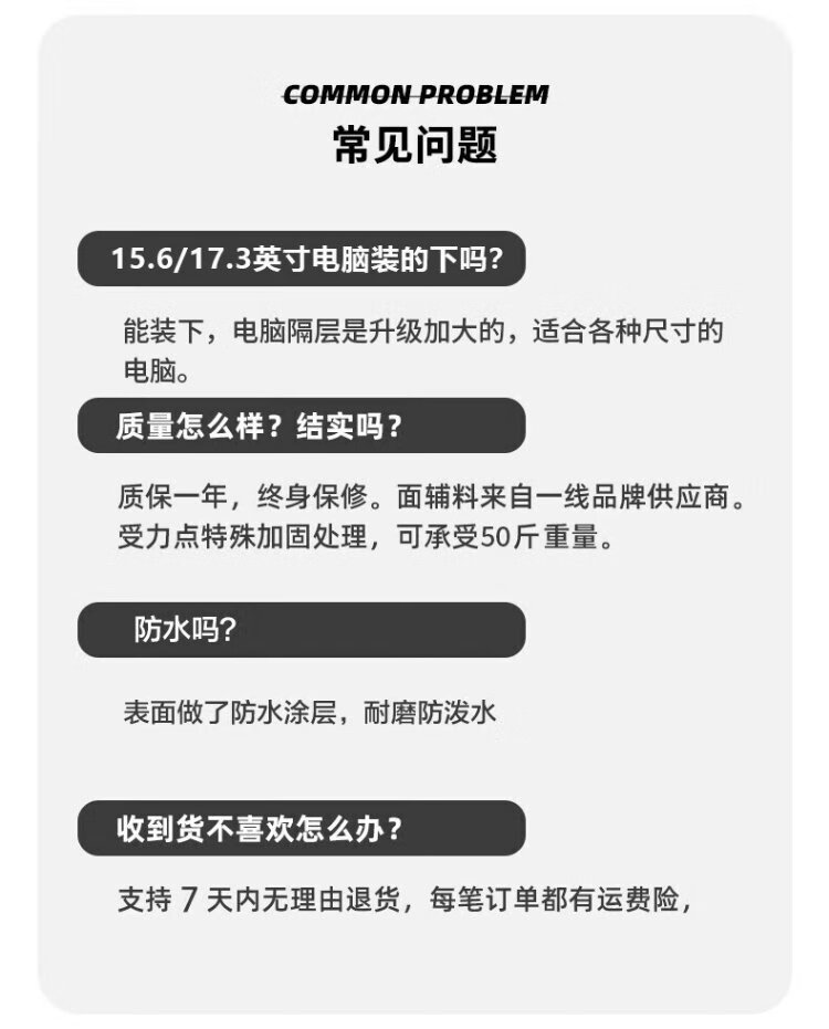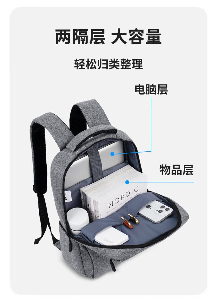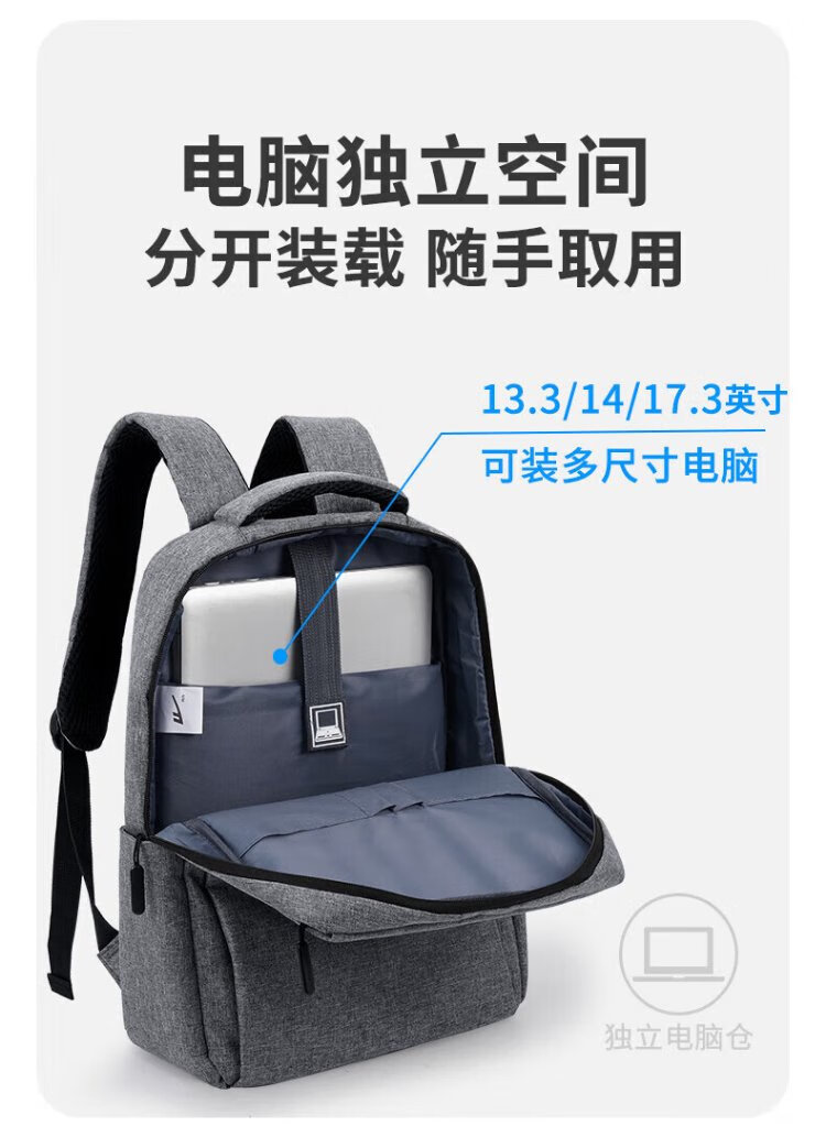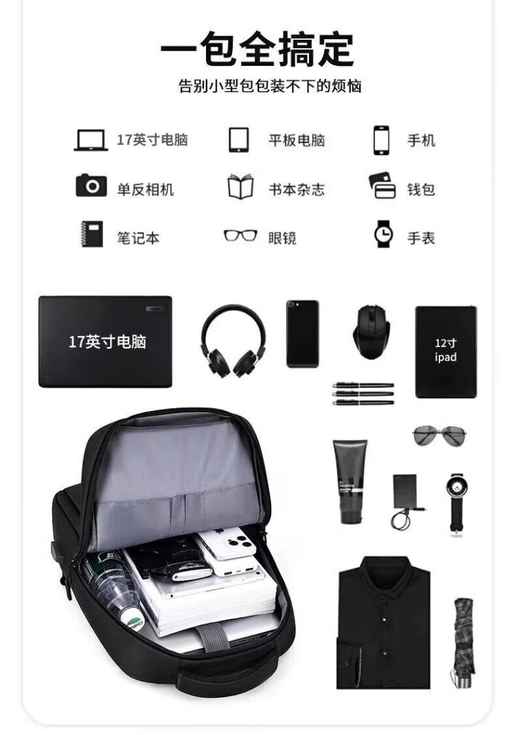 Pull back computer backpack men's notebook 17.3-inch large capacity business trip travel bag college student computer backpack