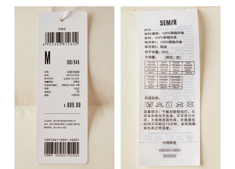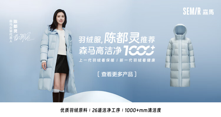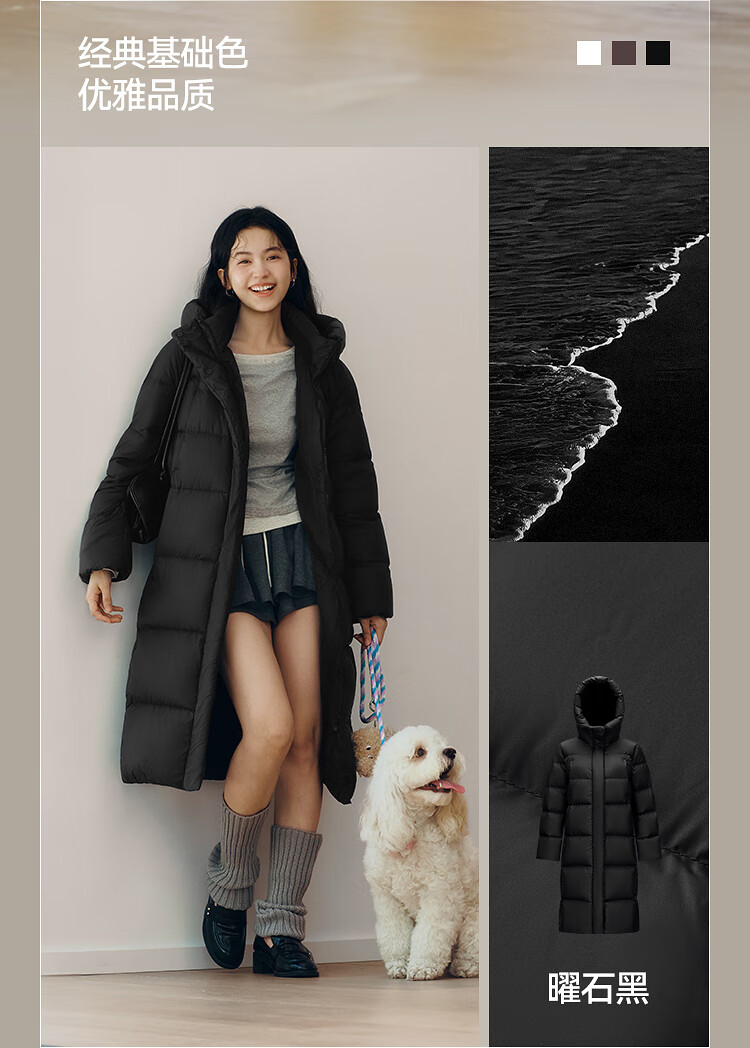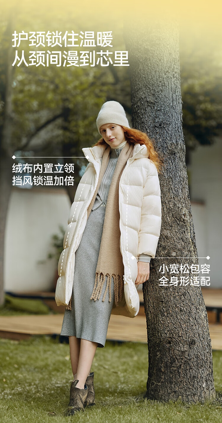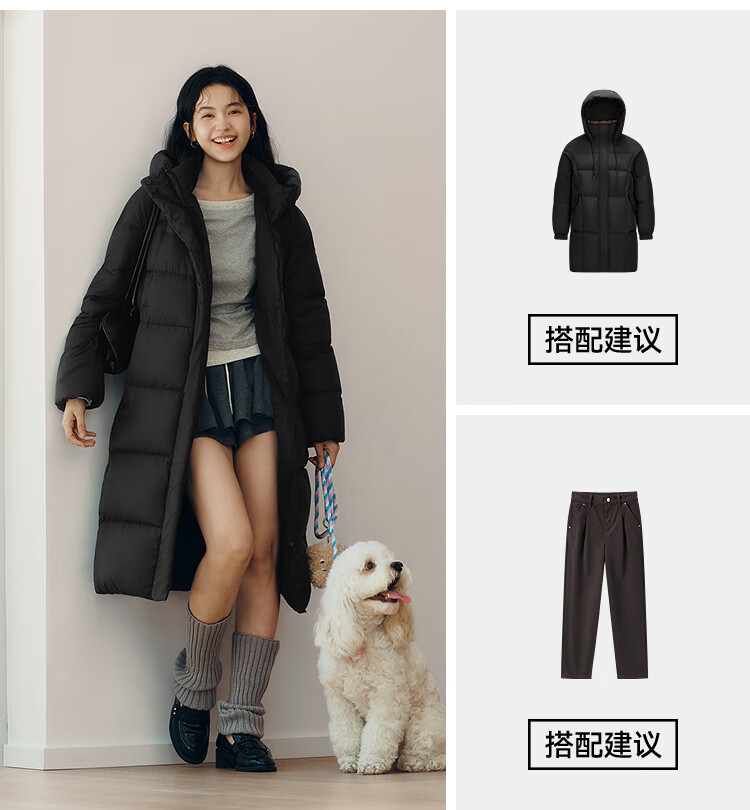 Semir Chen Duling same style down jacket women's 90 velvet long three-proof winter loose hooded jacket simple 109724113001