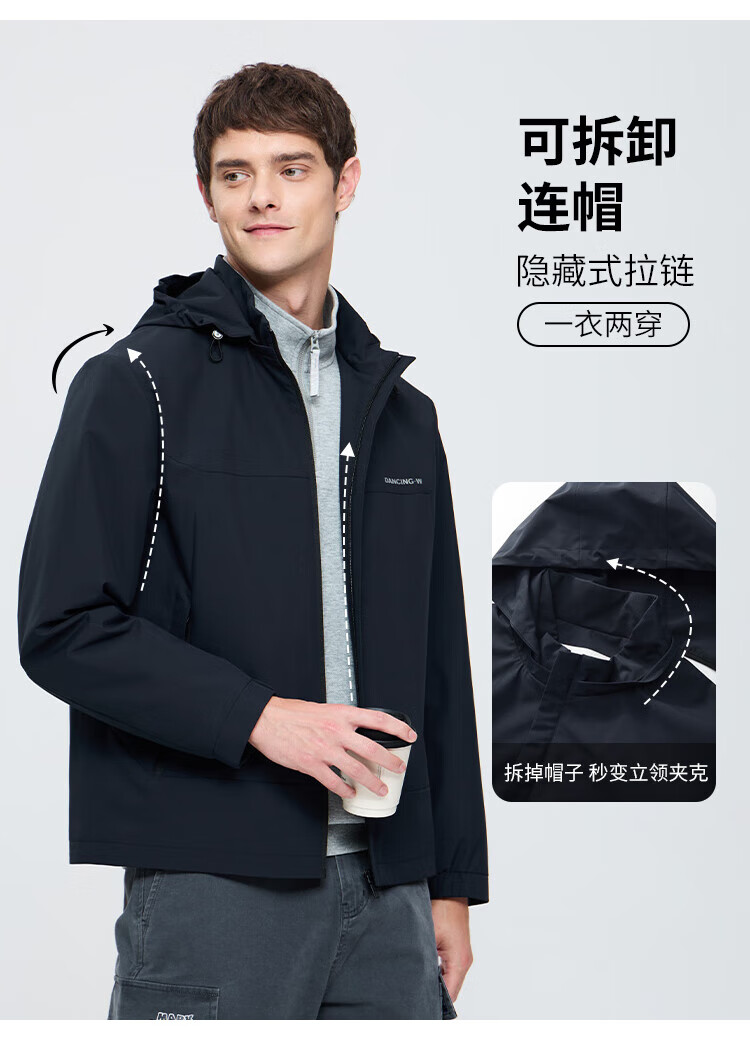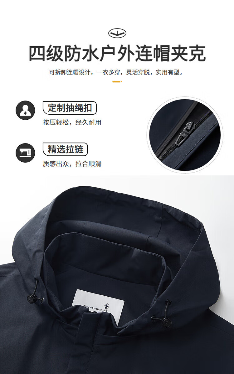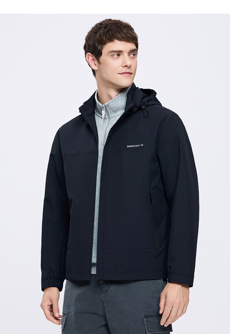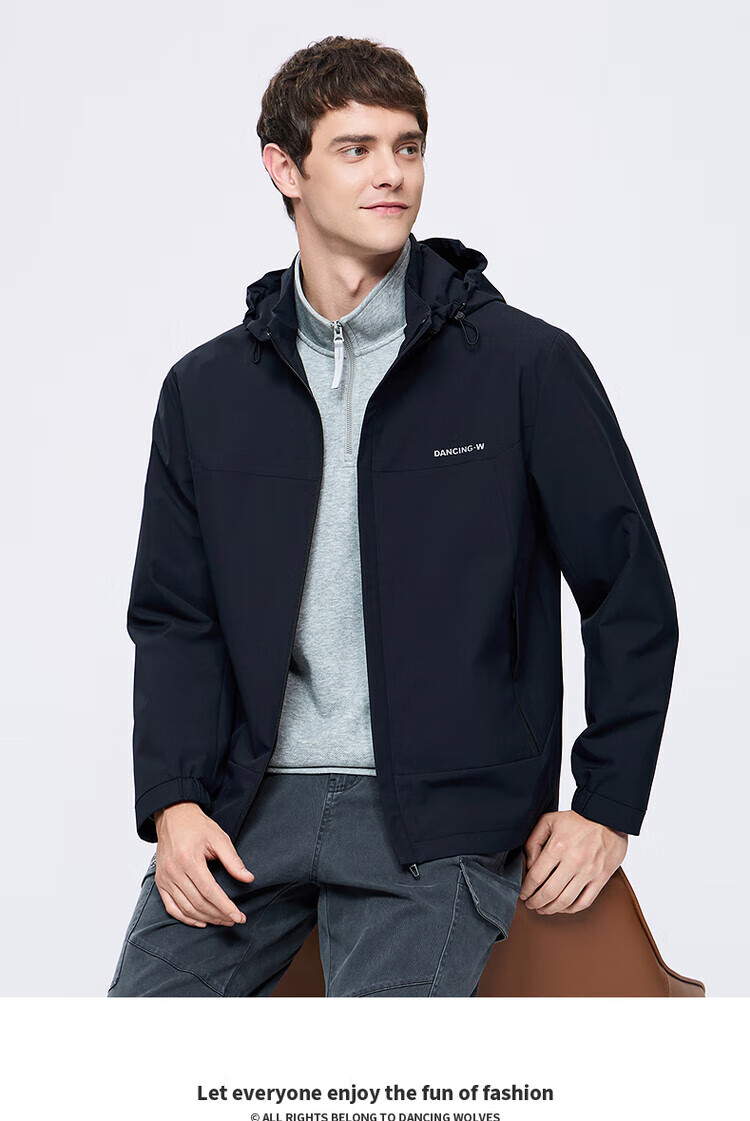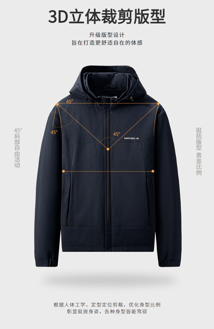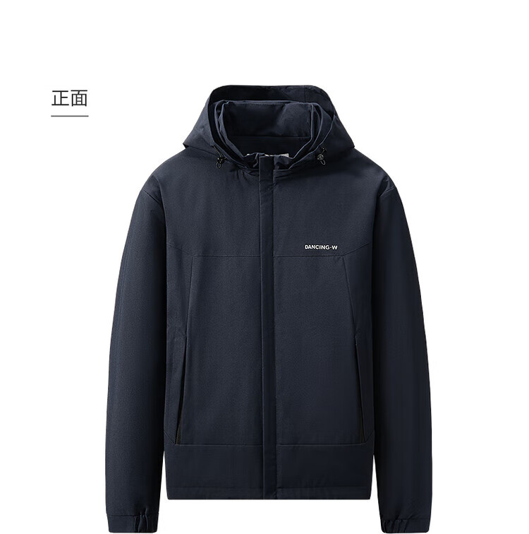 Dances with Wolves Silver Fox Velvet & Level 4 Waterproof Outdoor Wind Hooded Jacket Plus Velvet Warm Men's Jacket 101 Navy L