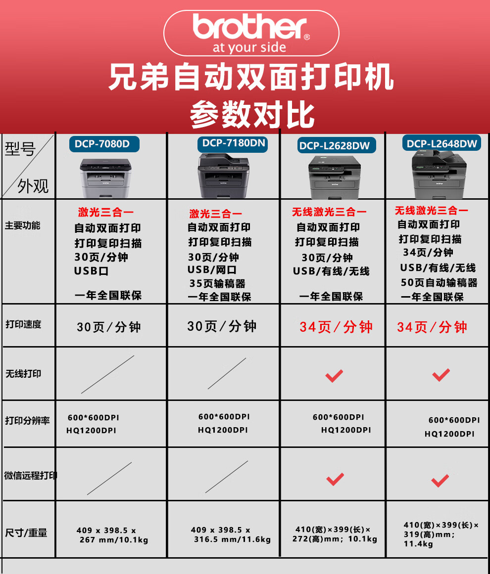 Brother DCP-7080D/7180DN/L2628DW/L2648DW black and white laser printer copier scanner all-in-one automatic double-sided printing office commercial HL-2260 official standard (single laser printer)
