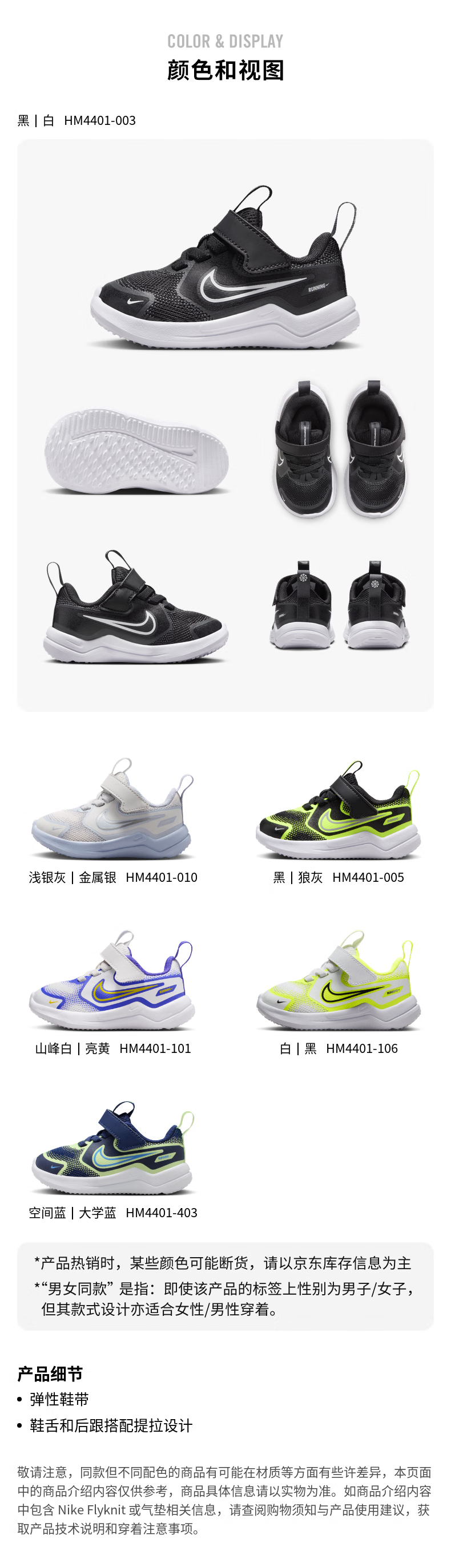 NIKE COSMIC RUNNER HM4401 baby breathable sports shoes for boys and girls in winter